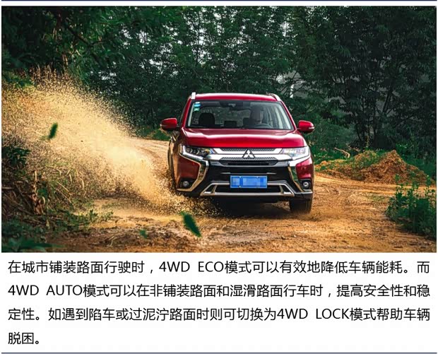 四驱VS两驱,轻度越野轻松征服 集轿车的舒适、MPV车型的大空间、越野车的通过性于一体的SUV,通过性的高低同样是衡量SUV车型好坏的重要指标之一。 欧蓝德搭载的4WD四驱系统,拥有4WD ECO模式、4WD AUTO模式和4WD LOCK三种模式。这套四驱系统赋予了欧蓝德较强的越野性能,在同级别的城市SUV中的表现出色。