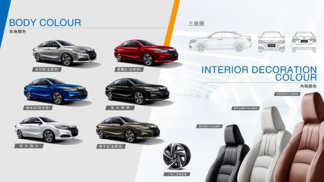 新车提供冰河银(金属漆)、星曜红(金属漆)、极光蓝(珠光漆)、奥夫特黑、塔夫绸白、摩卡金(金属漆)六种外观颜色。