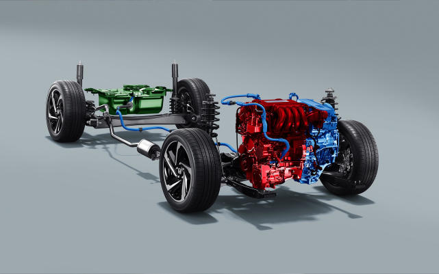 i-MMD双电机混动系统拥有EV行驶、混合动力行驶和发动机行驶三种模式。在EV行驶模式下,车辆完全依靠电动机驱动车辆行驶,发动机不运转,电机最大功率131马力(96Kw),峰值扭矩267Nm。在混合动力行驶模式下,由发动机驱动电机发电,再由电动机驱动车辆行驶,发动机不直接驱动车轮,混动模式下综合最大功率154马力(113kW),综合油耗百公里4.0 L。在发动机行驶模式下,车辆由发动机直接驱动车轮,电机在必要的时候也会辅助进行驱动,以获得最大的动力输出。三种驱动模式可以在不同路况下进行智能切换。 凌派锐·混动的电机(PCU)位于发动机舱,而经过扁平化处理的锂离子动力电池组(IPU)位于后备箱下方的后悬架上,这样的设计不仅不影响车内乘客的乘坐的空间,也不影响后备箱的空间。