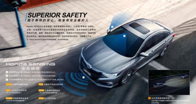 驾驶辅助方面,凌派锐·混动搭载Honda SENSING安全超感智能驾驶辅助系统,有主动自适应巡航、车道保持辅助、车道偏离抑制、交通标识识别、盲点监测等功能。