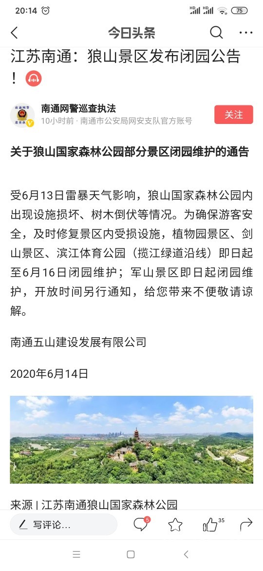 [百姓民声] 狼山景区发布闭园公告 |