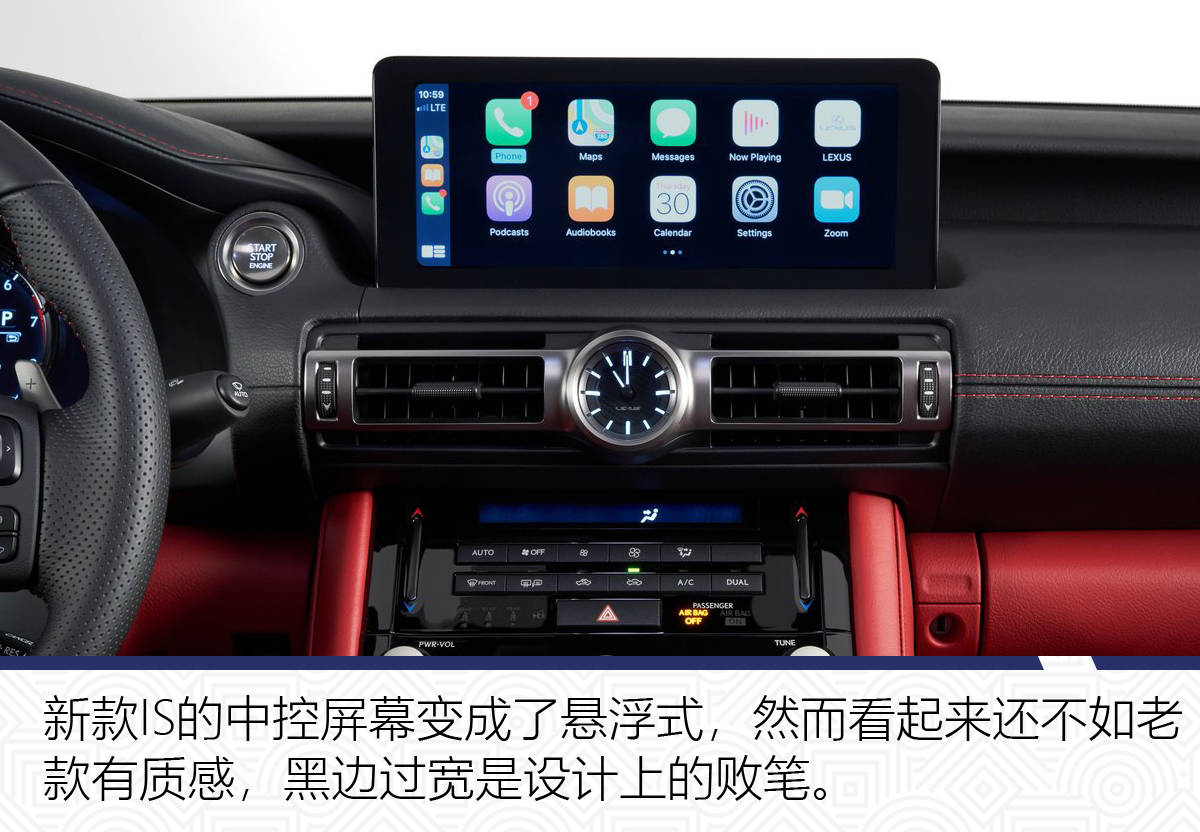 5 N' E; F: ^) [6 C0 ~你们看腻了的内饰 你们千万不要被外观所迷惑,依旧采用NEW N平台的IS内饰基本上还是老样子。这个设计对于90后的我来说恰到好处,甚至还有点儿超前思想,毕竟我是那种接受不了新鲜事物的人。但是放在现阶段来看,大多数消费者还是觉得这内饰精致有余而新意不足。 死磕老平台,只从细节上优化操控 我大胆的猜测,雷克萨斯可能并没有把IS的地位看得很核心,毕竟这台生来小众的产品,肯定是无法在销量上与 ES(参数|图片)这种产品对标的,并且ES的前驱平台有着先天的成本优势,这一点在升级了TNGA架构之后更加明显。而IS作为完全相反的产品,在成本上,销量上都不占优势,所以老平台用到现在也就顺理成章了,雷克萨斯的观点就是,消费者喜欢就买,不喜欢我也不强求呗。 仅仅是买菜车而已 相对于外观和内饰,我最在意的就是新款IS的动力系统,毕竟我自己是一个大排量自吸爱好者,再加上JDM的情结,总希望雷克萨斯IS能用上大排量自吸动力。之前曝光的最顶级IS 500 F Sport将会采用5.0L V8引擎,但是现在也没有信儿了,3.5L V6估计也进不来中国,剩下的2.0T和2.5L混动一点儿意思都没有,佛了,佛了! 总结:雷克萨斯IS很难在中国摆脱“叫好不叫座”的命运,除了自身的产品定位有些模糊之外,更关键的是雷克萨斯并不把IS作为中国市场的主要盈利车型,因此升级改进的点都没有对上国人的口味,所以未来新款IS是否会像粉丝期待的那样进入中国市场要画个很大的问号。就算是进来,估计也是台升级了国六的2.0T雷克萨斯IS,竞争力又能强到那里去呢,消费者依旧不买账。 , L d+ `1 V' r F' y' A