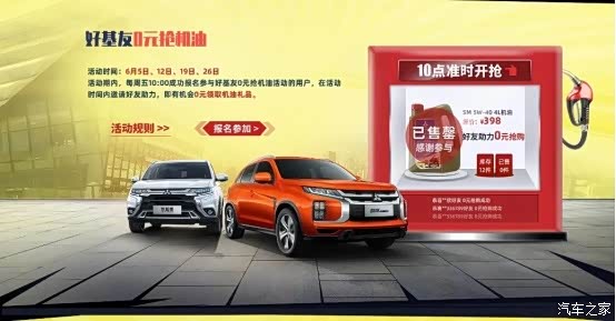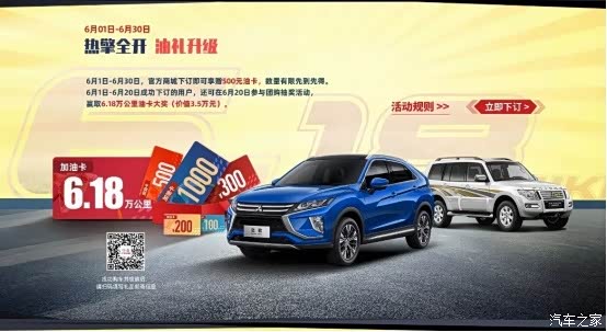 ①百吨油热擎大放送,你购车我包“油” 6月30日前,至广汽三菱任一线上平台(官方商城,天&猫,京东,苏宁旗舰店)支付【6.18元订金】下订,即可享赠500元油卡。21日前成功下订的用户,还能参与620团购大抽奖,赢取6.18万公里终&极油卡大奖(价值3.5万元)、以及1000元、500元、300元、200元、100元不等额油卡和50元京东卡! ②福利周好礼不停,油卡限量秒杀 6月每周五上广汽三菱官方商城报名参与活动,邀请好友助力砍价,前12名即有机会0元领取机油。15日-21日每天下午15:00,还有500元油卡限量秒杀。 ③智囊团上线,助你“云”选车。 6月19日、24日下午14:00,云上智囊团与你相约广汽三菱天&猫官方旗舰店,不仅手把手教你“云”选车,还有500元油卡、腾讯VIP季卡、华为P40 5G手机、飞利浦车载吸尘器等你带回家。 ④晒618购物心愿,赢购物基金。 6月30日前,上广汽三菱官方商城或天&猫参与#免单心愿,集赞赢好礼#话题互动,留言分享你的618购物车心愿清单,分享至微&信集赞,前30名即可获得100元购物卡。 ⑤关注店铺,畅享幸运好礼 6月30日前,关注广汽三菱天&猫、苏宁、京东官方店铺,即可抽取千元购物补贴、腾讯视频VIP季卡。纯福利,无套路,一键清空购物车。 焕新而来的2020款欧蓝德,升级亮点满满,还有购车福利轮番上阵,如有意向购车的朋友,不妨趁此次车展亲身感受,6月20日-6月28日,欧蓝德在深圳会展中心1号馆6号展位广汽三菱展台等你来!