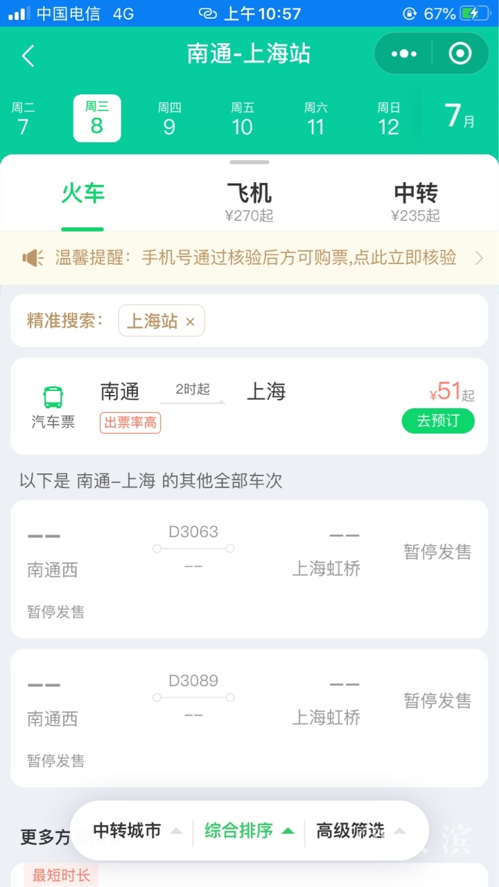 [随便港港] 南通西到上海虹桥暂停发售 |