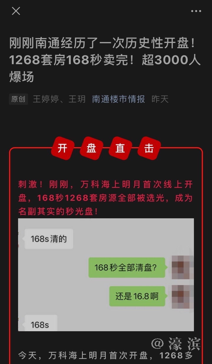 [随便港港] 南通所有新楼盘销售不说多少秒清盘,都不好意思发朋友圈。 |