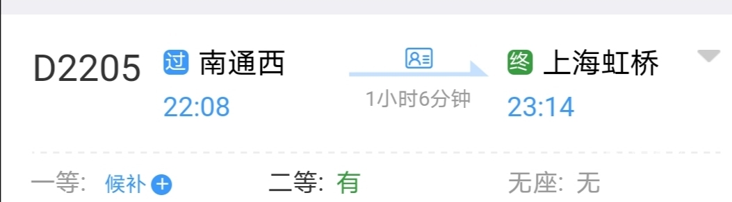 [随便港港] 南通西到上海虹桥1小时6分钟 |