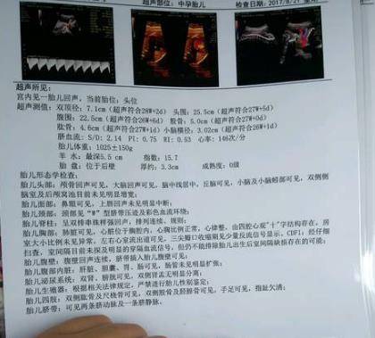 很多女性在怀孕了之后,每个月都会去医院定期做产检,而且还要排很长的队去做彩超。通过彩超我们可以得知胎儿的发育情况,那么很多孕妈就要问了,平常每个都做彩超,为什么到了24周的时候就必须要做四维彩超呢?这其中到底会有什么样的不同,这是很多孕妈都比较纠结的问题。 甚至有少数的宝妈觉得做四维彩超真没用,除了能够看清楚孩子的轮廓,别的和平常彩超结果并没有什么异样呀。一般情况下彩超也发现不了什么太大的问题,因为健康的胎儿还是占多数的,而每次产检都是为了观察宝宝的发育情况,孕妈之所以选择产检也就是图个安心! 但是也有一些特殊的情况,比如在彩超当中发现不了的小问题,四维彩超就会特别细心的为孕妈发现一些不可预料的问题!所以在孕期24周时,是必须要做的这项检查,是对自身还有胎儿一种负责的行为。如果发现宝宝健康完好,那么就可以安心等待宝宝的出生。 有些宝妈看到四维彩超的报告单时,还一脸懵,这不是和平常检查没什么两样吗?而且上面还能够看到一个隐隐约约的婴儿轮廓,除了这些也没啥大变化。事实上这份报告上已经透露出来胎儿的“小秘密”了,你能够看得懂吗? 1. 可检测出来胎儿的外观结构 通过上面一个面部轮廓,可以看出胎儿的五官,还有颅骨光环,甚至连小脑上面的结构都能看的一清二楚,脑部回路都能清晰可见,比如脑中线是否居中,双侧丘脑有没有显示,或者是小脑延髓池有没有明显增大等等状况,上面的数据都现实的非常清楚! 上面还非常清楚的说出了胎儿的五脏六腑是否齐全,而且还会告知孕妇胎儿的内脏器官是不是可以清楚可见,肠管内有没有异常现象,这些都会在报告单上显示出来! 假如孕妈身体出现肾盂分离的状况,大多数是因为胎儿没有大小便引起的,这一班可见是男宝宝身上,不过在下次复查的时候,这种现象便会消失! 通过四维彩超,我们可以得知胎儿是不是有唇裂或者脑部积水,无脑儿,脊柱裂等特殊的结构异常问题,但是对于视力、听觉、智力、先天性遗传等问题,报告没有办法判断出来的! 2. 了解胎儿发育的基本状况 报告上面又显示胎儿的双顶径,股骨长等一些明显的尺寸数据,通过这些数据,我们知道每个月宝宝有没有长大长高一点点,而且还可以测量出宝宝的胎心率,还有其动脉血流的各项指标! 还可以探测出来胎儿心跳的频率,这和我们成年人也是不相同的,根据《妇产科学》表明:胎儿的胎心是以110-160次/分为标准,所以在胎儿的心跳在这个范围内就可以放心了! 3. 了解胎儿发育环境 其实还会告诉你胎盘是否已经成熟,还会告诉你羊水高度、胎儿是否被脐带绕颈,这都是在告诉你胎宝宝现在是都安全,处于一个什么样子的环境! 胎盘的成熟度报告上面会写到1-4级,当达到4级的时候才会临近分娩!羊水量的话则是5-25cm的指数范围,2-8cm则是羊水深度,如果在这个范围之内,那么就说胎儿坏境很正常! 说到孕妇最关心的问题,就是脐带有没有绕着孩子的脖颈,一般报告单上有V字则是代表绕颈一周,如果是W则代表两周。如果发现绕颈太多,一定要及时注意胎动问题,以免宝宝出现缺氧症状! 4. 影片纪念 四维彩超上的宝宝的轮廓可谓是宝宝的第一张照片,孕妈可以把它当做永久的纪念,毕竟想要重新再照一张类似的照片,是不可能的了! 孕妈也不用担心做四维会对胎儿有什么大的影响,因为这是通过超声波采取的立体图像设置,对胎儿并没有啥太大的伤害,只要不超过30分钟就行!而现在这项技术可谓是目前最为先进的彩超检查了,所以孕妈就放一百个心吧。 通过报告单上的以上几点,那么想要知道胎儿的“小秘密”就不是那么难了!不知道孕妈们对此还有什么不懂的问题呢?