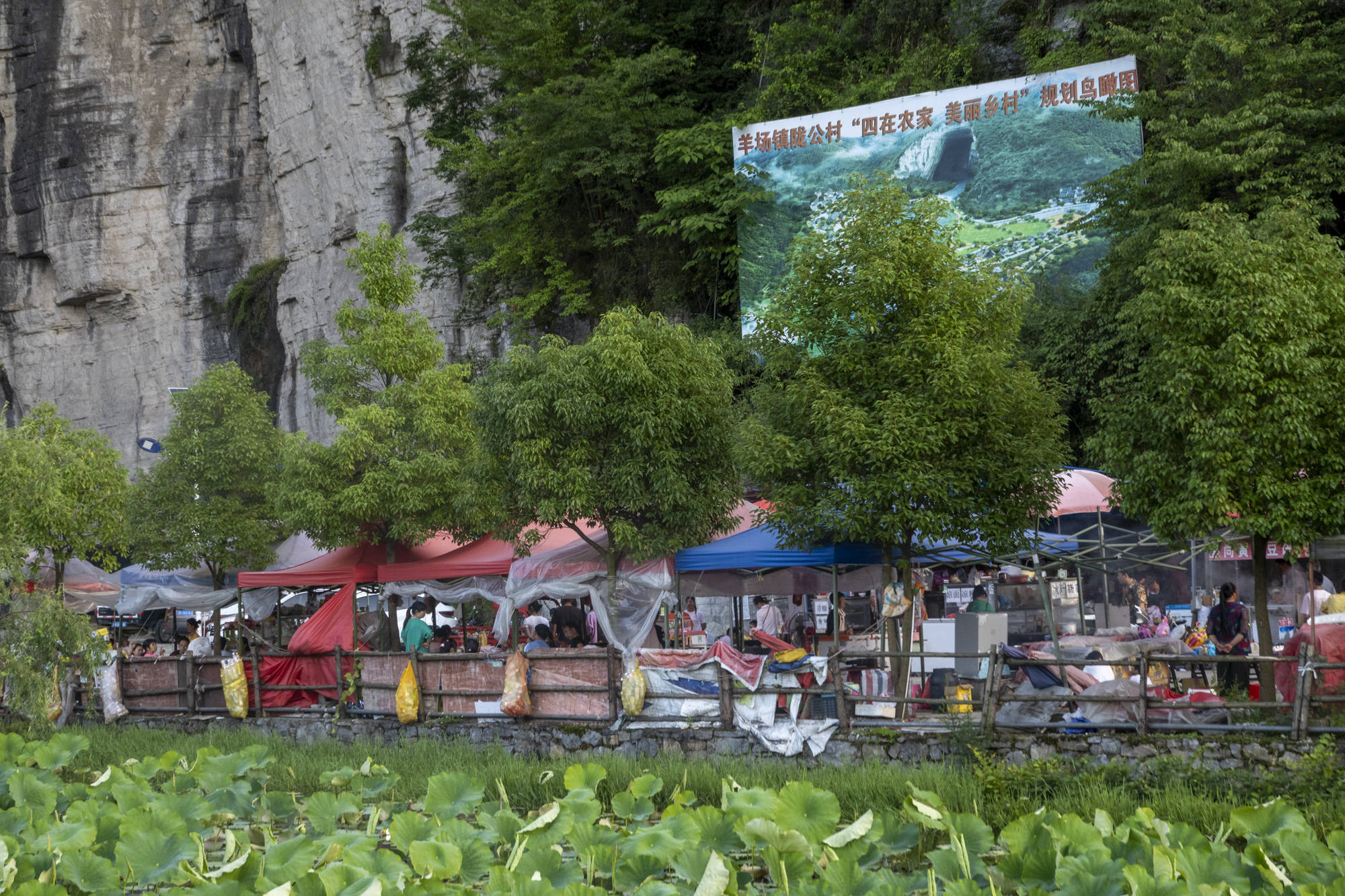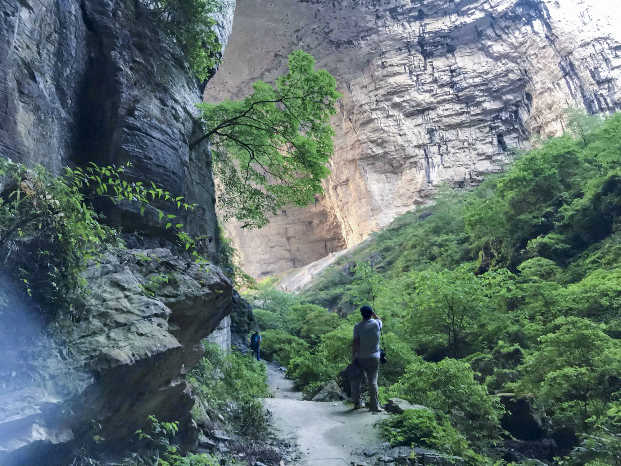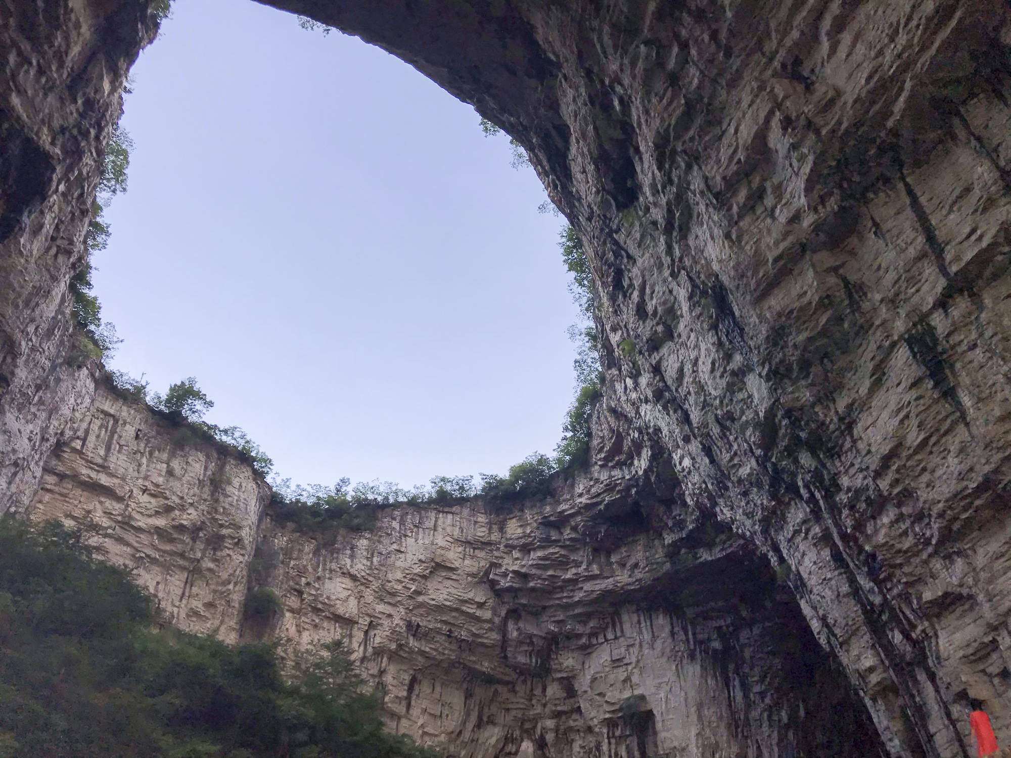贵州是中国最多山的省份,也是我国唯一没有平原的省份,贵州有句俗语说“天无三日晴,地无三尺平”,又说“九山半水半分地”,这很贴切的形容了贵州的地形地貌。 贵州山多,山洞也多,有贵州的朋友形容,只要你在贵州自驾,沿途山上处处有洞,而且一个比一个大。以前我觉得有点夸张,不过近日在贵州自驾我是亲身体验了贵州的山洞之多,之奇,之险,堪称溶洞王国,令人叹为观止。 贵州的山洞我觉得可以分为普通山洞、溶洞和天生桥洞,最出名的有织金县的织金溶洞,纳雍县的九洞天天生桥等等,不过在毕节市还有一座山洞为世界之最,它就是大方县的清虚洞。 大方县 位于贵州西北部,2020年被评为中国夏季休闲百佳城市,境内有慕俄格古城、奢香古镇等,贵州朋友说在山里有个清虚洞,值得一看,我带你们去感受一下世界之最。 从大方县城导航到清虚洞需要半个小时路程,不过贵州的山路难行,山里的公路也狭窄,两车相会需要特别谨慎,所以10多公里的路程,经过40多分钟我们才到了大方县羊场镇陇公村,这里就是清虚洞的所在地,一个巨大的天生桥山洞矗立在我们面前,那种顶天立地的气势迎面而来,令人惊叹。 来到这里那日正赶上端午小长假,出行的游客很多,清虚洞的前面已经排起了许多摊位,都是一些当地的村民,而在清虚洞里依然成了一个宽阔的停车场,许多来参观的轿车停放在了里边。 从路边竖立的规划牌上可以看出,当地对清虚洞进行了愿景规划,将来要把这里打造成一个旅游景点,不过现在这里是免费的。 清虚洞的前面是一片上百亩的荷塘,由于不是荷花盛开的季节,所以只能看荷叶翠绿,莹润清雅。而清风洞则不同,更显威武庞大,气势逼人。查了资料了解到了它的一些数据,1998年,美国洞穴基金会、贵州师范大学地理系组成联合考察队,对该洞进行实地测量,该洞桥高178.25米,跨高105.25米,拱桥跨度最大处127.35米,最小处77.69米,桥身长400米,宽200米。 洞内的面积约5000平方米,在洞的后侧有一个巨大的天窗洞,在四壁也还有许多山洞,再往里走,还有一个巨大的山洞,漆黑一片,深不可测,由于没有探照工具,我们未敢贸然前行。 据现存的世界各国类似清虚洞溶洞的数据资料论证,该洞的规模比之前报导的称超过了世界吉尼斯记录的贵州黎平高屯天生桥更为宏大。目前,清虚洞天生桥已申报世界吉尼斯世界第一的请求,并已被大世界上海吉尼斯总部接受。 清虚洞以其独特的天窗结构和巨大的拱桥而闻名,其顶接蓝天,洞吞日月,确实一处壮丽的溶洞奇观。 别看这只是一座山洞,其实它还有许多历史故事。在清朝时由于匪患猖獗,为了保一方太平,这里曾经修筑了围坪和营盘,用来避匪多年。 民国时,这里又被僧人占用,修筑庙宇,取名清虚洞。曾经诵经声不息,香火旺盛。 在上世纪40年代初,这里还曾作为中国中国第一航空发动机制造厂铸造车间和螺旋桨生产车间。蒋介石曾站在清虚洞天桥下,向航发厂的1700多名员工训话,发出了“我们发动机何时才能完全自制”的天问。 清虚洞内还有一条河很特别,许多河都是由洞内流向洞外,而这里的的河是由洞外流向洞内,一直流向了洞内的最深处,到底它流向了哪里,至今是个未解之谜。 夏天来这里避暑是个不错的选择,四周青山叠翠,山下溪水潺潺,许多错落点缀在山涧,让人有种“久在樊笼里,复得返自然”之感。夕阳唱完,微风轻拂,荷塘里的片片荷叶摇曳,空气里满是淡淡的清香,许多游人在这里拍照、小憩,感觉生活十分的惬意。不远处,便是气势宏伟的清虚洞,令人不得不感叹大自然的鬼斧神工。这里真的是一个“看得见山、望得见水,感受得到乡愁”的好地方。 2 E1 p6 b" t" i) A" e