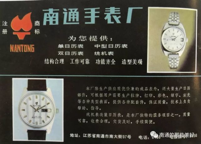 南通无线电元件四厂风雷牌70-71型晶体管收音机说明书 南通钟表 南通手表厂:1975年南通韬奋印刷厂承担了南通手表厂筹建任务。1976年11月成立南通手表厂筹建处,1977年试生产长江牌手表,1979年改商标为南通牌。1983年1月建立南通手表厂,同时试制火炬牌日历、双历手表及全自动手表。