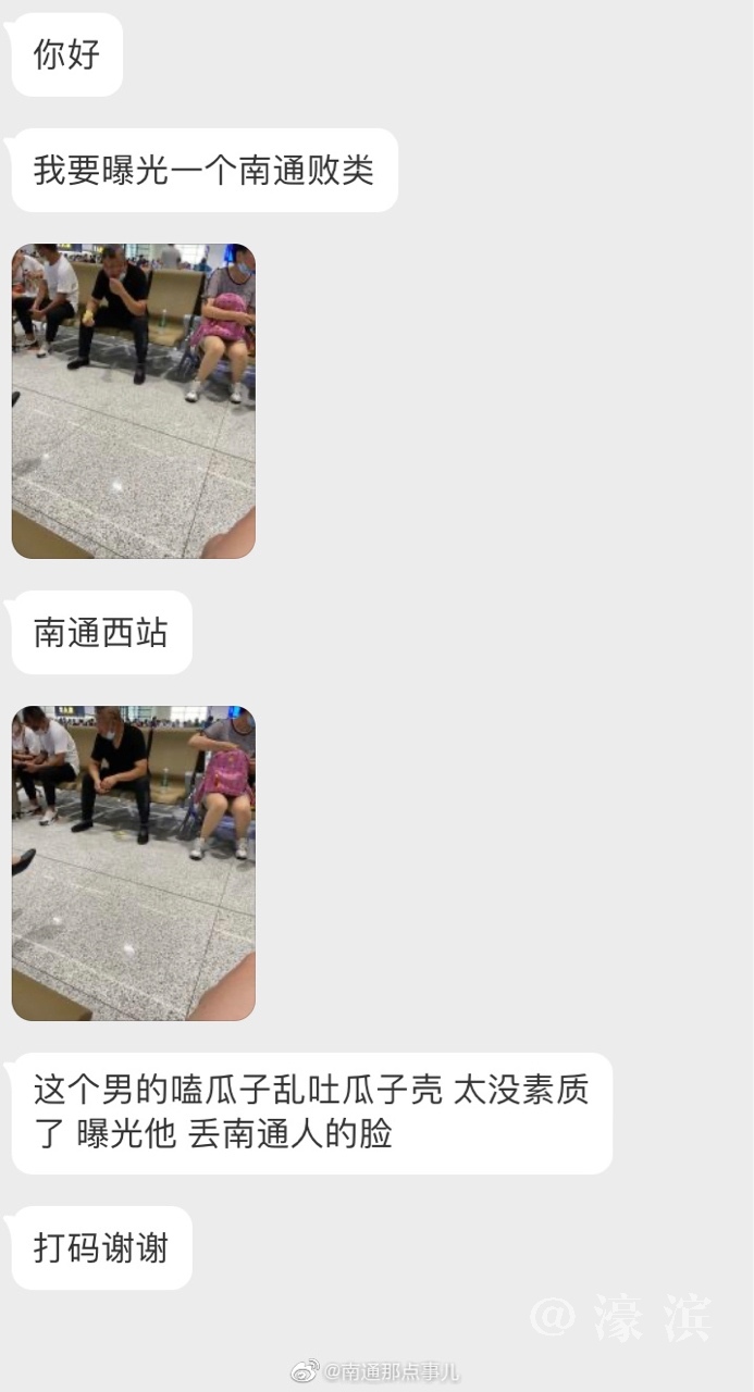 [新闻快讯] 南通西站,这个男的嗑瓜子乱吐瓜子壳,太没素质了 |