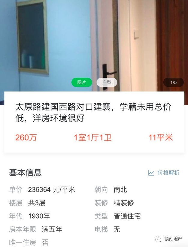 . |) B6 w6 _# a+ w, j每经记者:包晶晶 在上海徐汇区,一套房龄达90年、没有独立厨卫、面积仅11平方米的“迷你”老旧房子,在名校学区的加持下,如今价格竟然卖到了近24万元/平方米。 “姐,你来晚了,这套房已经卖掉了。”当镁编打听一套太原路199弄、对口建襄小学的学区房时,中介崔建军遗憾地表示,“类似的房子也有,但是单价要30万了,差不多价格的您得等等看,最近没有。” 崔建军告诉镁编,由于划片体量小、学区稳固,太原路片区每次有二手房挂牌都会迅速成交。 随着2020年“幼升小”“小升初”录取工作结束,上海的民办小学、初中生源“掐尖”时代已告结束,民办学校将不再具备挑选生源的权利,大批“牛娃”开始向公办学校回流。随之而来的,是“学区房”的又一轮狂欢,学区房价格也再度成为市场上与居住价值最不相符的产品。 有着百年历史的上海太原路 图片来源:镁编 摄百年历史的老旧“蜗居” 为寻找更多房源信息,镁编近日来到太原路199弄,欲一睹最迷你“豪宅”的真容。 太原路原名拉斯脱路,全长0.99公里,北起汾阳路,南至肇嘉浜路,1918年开工建设,有着百年历史,沿路布满了老上海著名的高级住宅。一路走来镁编看到,太原路与汾阳路160号“太原别墅”,原是马歇尔公馆;太原路200号为汤恩伯故居,50弄1-2号、56弄1-4号、64弄1-4号的并立式花园住宅均是上海市优秀历史建筑。 值得一提的是,为保留历史风貌,2010年后,太原路已经成为上海市“永不拓宽”的64条道路中的一条。而这套迷你“豪宅”所在的太原路199弄,本身也是上海市优秀建筑。如今这一带居住的“72家房客”中,既有出生于此的老上海人,也有慕名而来体验老上海生活的外国人,还有因租金低廉租住于此的外来务工人员。 太原路附近中介展示的房源信息 图片来源:镁编 摄虽然这套“迷你”豪宅建造于1930年,没有独立厨卫,面积也仅11平方米,但这样的“使用权房”在著名小学学区的加持下,如今已经是实打实的“抢手货”。几年前,这一带的房价还在20万~25万元/平方米徘徊,今年已经飙升到25~30万元/平方米。 虽然这套“迷你”学区房已经成交,但崔建军告诉镁编,他手里还有类似的房源,不过单价要30万元。 镁编在太原路附近一家房屋中介店的房源信息板上看到,一套位于太原路的房源,面积仅10平方米,总价达305万元,折合单价30.5万元。 在走访中镁编发现,太原路、复兴西路一带,随处可见这类极具历史感的“新里洋房”,浪漫风景的背后,是逼仄条件下的“蜗居”。在这片新里洋房,厨房、卫生间仍然需要几家人合用,不少一楼居民淘米摘菜都在厨房门外进行,而近几年部分房屋经过自行改造,才实现了卫生间的半独立。 “迷你”学区房单价30万 这样的老房子也不是突然成为“香饽饽”的。尽管上海已经努力多年办好“家门口的好学校”,但声名在外的“徐汇区四大公办”在家长们心目中仍如雷贯耳。为了能进入建襄小学、高安路一小、向阳小学和汇师小学中的任何一所,家长们使出浑身解数争抢为数不多的老牌学区房。 一位小学在读的家长告诉镁编,上海摇号新政公布后一个月内,自己就迅速买好了初中学区房,这几年学位排序特别严格,越早入手越安心。 太原路的一套90年房龄的房源 来源:安居客但找到中意的学区房有多难?学校要好、交通要便利、总价要承受的住……在房价本来就居高不下的上海,学区房的价格更是令人望而却步,特别是在集中了优质公办教育资源的徐汇区、黄浦区,总上千万元的二手房比比皆是。于是,聪明的爸妈们摸索出了“小面积学区房挂户口+出租”的“最具性价比”操作。 为了让孩子进入优质公办小学就读,要根据不同小学规定的年限前完成买房和户口迁移,更热门的小学甚至只有“报出生”——即出生时户口落在这套房屋内,才能确保孩子进入对口小学。但这种操作也让部分学区房价格飙涨。记者了解到,对口建襄小学的“迷你”学区房,单价已经飙至25元~30万元/平方米,远远超过上海市中心各大豪宅项目的价格。 如上述中介挂出的10平方米“迷你”学区房,总价达到约305万元,不过却绝对无法满足一家三口(包括一个学龄儿童)的居住需求。于是,“装修一下出租”是购买此类学区房的标准操作。 太原路片区对口的建襄小学 图片来源:镁编 摄“姐,你改造一下,装个卫生间,租出去2800到3000块没问题,再大一点能租到3500块。”崔建军指了指自己头顶的二楼对记者说,“她们就是自己不住,改装了出租的,不愁没人租。” 买一套小房子挂户口,是家长们缓解孩子就读名校焦虑的无奈之举,而此举也让对口学校的入学排序规则逐年收紧。有家长戏称,这就是“互相伤害”。