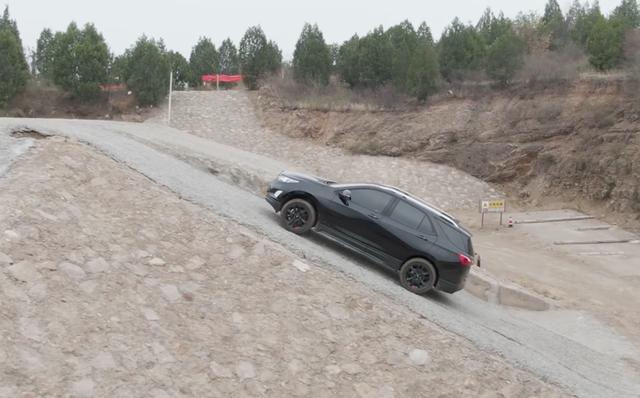 碎石上坡的土质比较松软,车辆在爬坡过程中,轮胎经常出现打滑,车辆依靠电子限滑的帮助,再加上超强的动力,顺利完成碎石上坡科目。