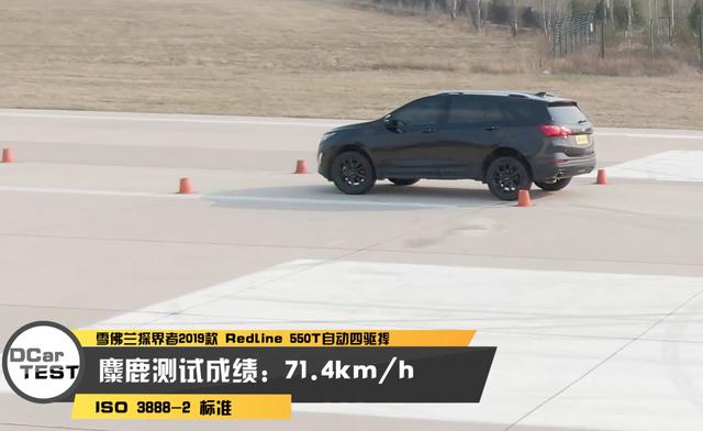 麋鹿测试,探界者的方向盘指向算不上精准,但反应很快,悬架的支撑到位,能够给驾驶员很强的信心。测试最好成绩为71.4公里/小时,作为一辆售价23万元左右的中型城市SUV,这个成绩已经很出色了。