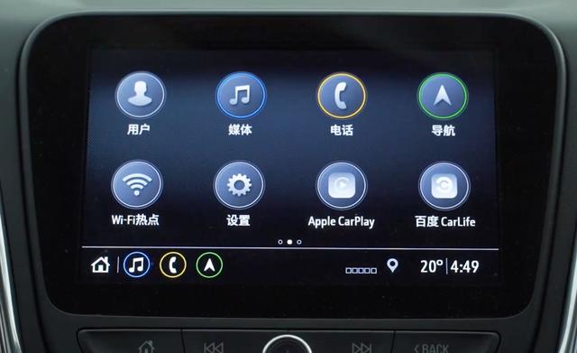 8英寸多媒体显示屏,里面支持CarPlay。安吉星还带有无线局域网功能,可以用自己的设备连接车载WiFi,不过这并不是免费的。