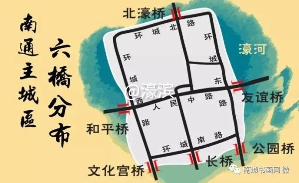 南通的桥最为人们所熟知的无疑是濠河上的6座桥——长桥、和平桥、友谊桥、北濠桥、文化宫桥和公园桥,自后周显德五年(公元958年)南通城建成,它们所圈起的“六桥之内”1.1平方公里的范围一直都是这座城市的中心区域。
