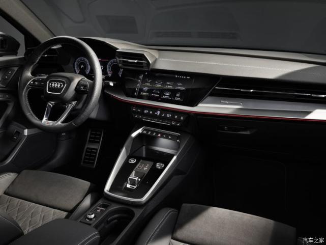 9 o7 M$ H' Y; e1 U, F3 [) T) u- u4 C内饰的设计可以说是新一代奥迪A3最大的亮点,所以新一代奥迪A3Limousine也完全参考了两厢版的布局,更多直线条设计,使得中控台层次感非常强。同时奥迪拿手的虚拟座舱成为新车的标配,包括10.1英寸中控触摸屏、10.25英寸全液晶仪表盘(高配12.3英寸),此外新车还将配备最新的MMI信息娱乐系统,将支持苹果CarPlay和安卓Auto等互联功能。