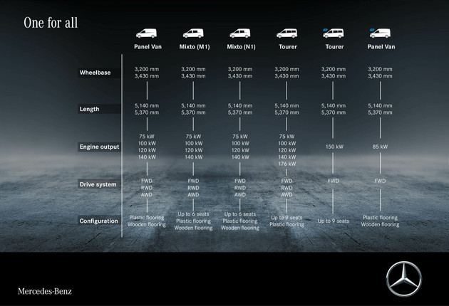 奔驰Vito车系在海外市场拥有多种车款,只有Vito Tourer和Vito Mixto注册为乘用车,而且只提供柴油发动机。代号OM654的2.0升柴油发动机有三种动力调校,最大功率190马力,峰值扭矩440牛·米,可与6挡手动或9挡自动变速箱匹配。 9 [2 ?- v& l5 J# f9 t, z9 Y