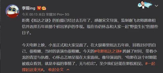 时隔五年,23岁的李现拍的影片终于在7月31日上映。《抵达之谜》从情人节档到如今,也同大部分影片历经了艰难,最终才和大家见面。从预售开始,票房就遥遥领先。上映半天票房已经接近千万,高居票房榜首。对于一个流量小生来说,这样的成绩绝对可以一骑绝尘的!远远地甩其他人一条街! 《抵达之谜》的故事设定其实还是很有特点的。讲述的是上世纪九十年代四个青年在一起少女失踪案中,经历恐惧、挣扎与妥协,导致四人关系分崩离析,最终步入伪善的成人世界的故事。在上映第一天,票房成绩不错的同时,不少观众都给了5星好评。 故事中四位空虚颓废的底层青年赵小龙、方圆、大四,三皮是一所船舶技校的学生,他们成天逃课,打架,逛录像厅看港片,在迪厅整日蹦跶无所事事。小龙和方圆同时喜欢上了一个女孩冬冬,还为此暗暗较劲,但后来冬冬却在一个夜晚失踪,赵小龙决定追查到底,之后这四个青年的命运各有不同。 作为疫情后上映的国产新片,《抵达之谜》的一大看点莫过于去年爆红的“现男友”李现,这也是他毕业后首次担纲男主角的“旧作”。李现还感慨称:回看23岁的自己,很稚嫩,当时的表演也很稚嫩。不过,就像导演所说,电影在这个时期能被观众看到,就是幸福的事情了,无与伦比。 五年前,还没有成为“小河神”,更没有成为“韩商言”的李现,放弃商业项目接下这个扮演上世纪90年代小城青年的故事。李现为拿捏好角色,自己去市场鱼摊体验生活,卖了一个月的鱼,每天八点起来苦练,埋头连杀带剖处理三四十条鱼。 说起李现的成名,还要回到去年的那部爆款电视剧《亲爱的,热爱的》,虽然该剧没有进入十大影响力电视剧榜单,但是丝毫不影响年轻观众对它的喜爱,而作为男主角,李现的人气也一下子飙升,粉丝数量更是火箭般的上涨,一时间几乎成为全网“现男友”。 《抵达之谜》面对观众是否愿意进影院的不确定性,选择在全国影院“复苏期”上映,无疑是勇敢的,而这份勇敢也与电影中的青春野性一脉相承,闪烁着永不服输的光芒,只为再次撑起电影这束光。而电影中遗憾又美好的爱情更是映照着2020这一特殊年份。 1 R+ Y% f$ S# I3 {& O