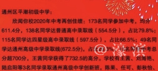 南通崇川北郊北城中学2020年中考的喜报呢 |