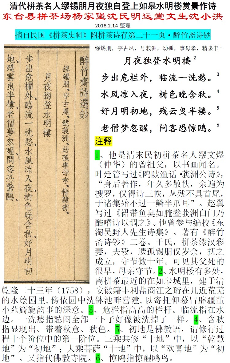 清末栟茶名人蔡少岚到如皋与李啸伯秀才登上水绘园内的水明楼感慨作诗 |