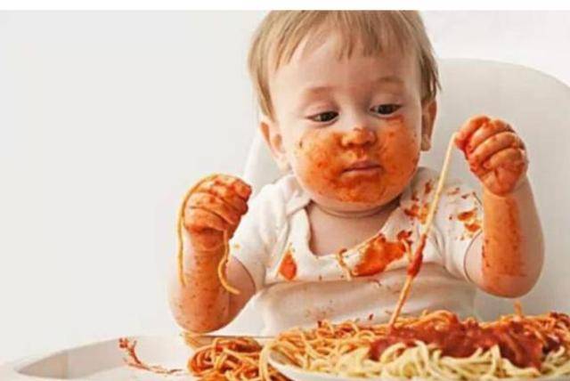 近日有位妈妈在网上晒出自己家的熊孩子吃火龙果的图片,问网友们打还是不打?这个可爱呆萌的小家伙圈粉不少: 都说女子本弱,为母则刚!当妈前可能打不开瓶盖,当妈后能有三头六臂,无所不能。当妈的熬过了十月怀胎,熬过了夜里2小时哺乳一次,却干不过"宝宝自己吃饭"。 有一种灾难叫做"宝宝自己吃饭",那现场,酸爽的不得了,当妈的内心OS:自己亲生的,莫生气! "小魔王"们,简直不要让妈妈太头疼: "妈,我的头饰好看吗?哈哈" "麻麻,下雪了,碗里飘下来的。。。。。。" "我们一起来研究一下这根面有多长好吗?吃饭什么的不着急" "我先干了,你们随意!" 当妈的心理先默念三遍:亲生的,亲生的,亲生的! 宝宝成长经历很多个过程,学习翻身,长牙,学习坐,学走路。。。。。。宝宝学习自主进食也是一个里程碑,开心的同时也令人头疼,本以为最烧脑的是给孩子准备各种营养又美味的辅食,殊不知,更加头疼的是"收拾宝宝吃饭后的残局",简直惨不忍睹! 其实,宝宝吃饭变灾难现场本身是一个学习的过程,有科学研究表明这是一个让宝宝变聪明的过程。 科学实验表明,"玩饭"会都让宝宝变得更加的聪明。 美国爱荷华大学的研究小组,首先研究了16个月大的宝宝对于固体与非固体的熟悉速度,发现孩子认识固体的速度要远远大于非固体。 相较于非固体,幼儿可通过形状和大小来对固定的形状进行判断和记忆,因而在对固体的掌握上会更快一些。 所以,宝宝在"玩饭"的同时也是在探索的过程。 其次,宝宝"玩饭"的过程中也能锻炼孩子的手眼协调能力,动手操作能力,逻辑思维能力,社交发展能力。 这些能力都是在玩耍中逐渐积累并衍生出来的,毕竟玩才是孩子的第一份职业。 宝宝学习自主进食是一个过程,不同时期表现不同: 6个月:这个时期的宝宝抓握能力还不熟练,动作不协调,对于准确的把食物送到嘴里,对于他们来说,还是有点难度。 这个时期,父母还是得多付出些精力,用一些小零食以锻炼孩子的肢体能力。 9-12个月:这个时期的宝宝肢体协调能力明显变强,但是随之而来的是好奇心也变强了。比如喜欢仍食物,看到大人把自己扔出去的食物又回来了,觉得其乐无穷。 15个月:这个时期的孩子可以开始锻炼用勺子吃饭了,刚开始,可能大人一把勺子,宝宝一把勺子,一起在碗里挖,最后,可能地上更多,吃进肚子里的还更少。。。。。。 但是这个阶段的孩子能听懂大人的一些简单指令,比如"放下","不许吃,吐出来"。 18个月:这个时候宝宝有一岁半了,不管是动作协调能力还是对于大人的指令都能很熟悉的掌握,所以如果这个阶段还扔食物就大多是故意的,需要父母及时纠正,改掉坏毛病。 对于训练宝宝的自主进食的能力,一定要知晓孩子每个阶段的用餐特点,循序渐进的锻炼孩子。此外,还应当抓住孩子吃饭的黄金时期,宝宝在10个月到18个月是训练自主进食的黄金时期,最晚不得超过2岁。如果孩子2岁后还无法自主进食,将会影响到将来上幼儿园。 虽然宝宝学习自主进食这个漫长的过程会让大人很头疼,也增加了大人很多工作量,比如清洗用餐工具,比如清洗衣物,比如给孩子擦洗干净,这些都让人非常累,但是,有收获总要付出,只能做父母的多点耐心,家人互相帮助,一起努力让孩子顺利成长。 2 x* }9 ?3 y* W