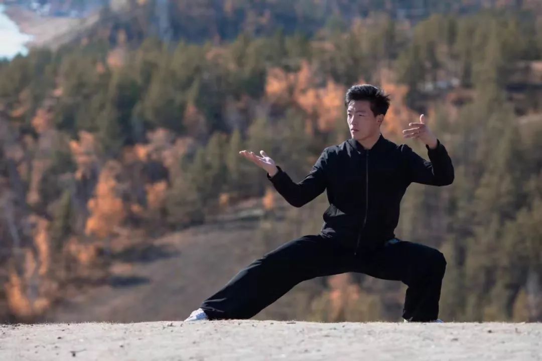 太极拳练习时,立身中正,八面支撑。头顶百汇和裆底会阴上下对应,不偏不倚。