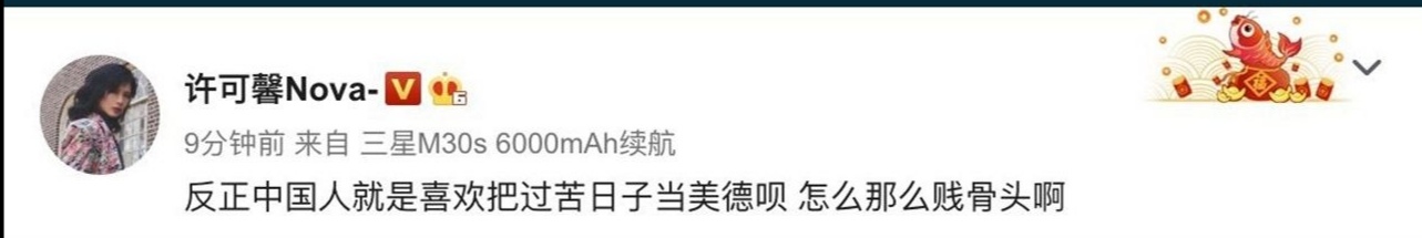 赞美苦难是最卑鄙的行为!许可馨说的不错! |