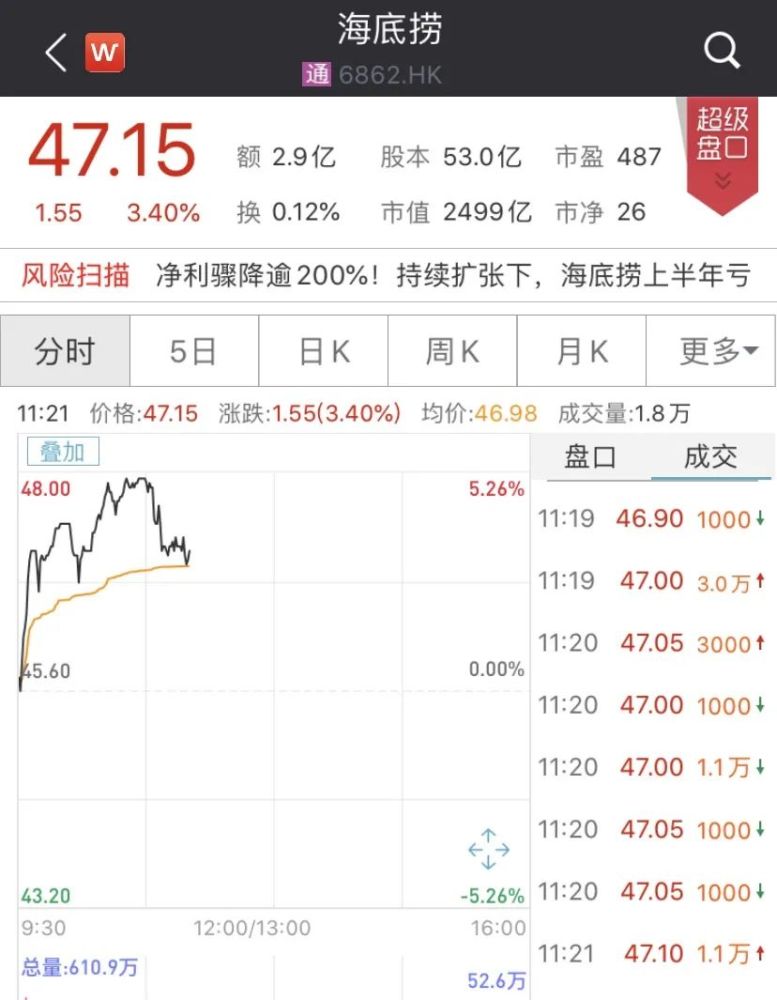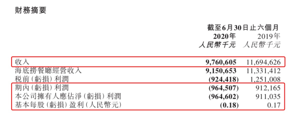疫情之下,餐饮业成为受影响最严重的行业之一。在麦当劳、必胜客、吉野家等餐饮巨头纷纷闭店裁员之际,“火锅龙头”海底捞的经营业绩也由盈转亏。 8月25日晚间,海底捞公布了2020年中期业绩报告,数据显示海底捞上半年由盈转亏,净利同比大降超200%。上半年每股亏损0.18元,去年每股盈利0.17元。 不过今日海底捞股价却未受影响,盘中一度涨超5%,股价再创新高。截至发稿,海底捞报47.15港元/股,涨3.4%,最新总市值2499亿港元。 海底捞上半年净亏损9.65亿 净利同比大降超200% 8月25日晚间,海底捞公布了2020年中期业绩报告。财报显示,2020年上半年,海底捞实现收入97.6亿元,同比下降16.5%;期内实现净利润-9.65亿元,相较于去年盈利9.12亿元相比,净利同比大降超200%。 对于业绩下滑,海底捞表示由于新冠肺炎疫情的爆发,上半年海底捞的主营业务亦受到重大影响。例如此前公告中显示的,自2020年1月26日起海底捞自愿暂停中国大陆所有门店的营业。随后在3月12日重新开放中国大陆地区大部分暂停营业的门店,同时要求每个区域开放营业的门店要严格遵守国家及当地政府对于防控疫情的要求,门店严格执行人流管控措施,安排顾客分散就坐,并限制就餐人数。中国大陆以外的市场也受到疫情的影响。 2020年7月,2020年《财富》中国500强排行榜发布,海底捞国际控股有限公司以265.558亿元排名第350位。 8月20日,福布斯发布新加坡富豪榜。华人亿万富豪张勇夫妇的身家增长了52亿美元,以190亿美元财富一跃成为了新加坡首富。其实自从2017年移民新加坡,张勇已经连续3年成为新加坡首富了。 上半年逆市布局 新开业173家海底捞餐厅 不过值得一提的是,今年上半年,海底捞扩张的心似乎未受疫情影响,逆市拓展门店,持续推进海底捞门店网络的扩张。上半年新开173家餐厅,截至2020年6月30日,海底捞全球门店数量达到935家,其中868家位于中国大陆的164个城市,67家位于中国香港、中国澳门、中国台湾及海外,包括新加坡、韩国、日本、美国、加拿大、英国、越南、马来西亚、印度尼西亚及澳大利亚等地。 分地区来看,在二线城市开设的海底捞餐厅居多为389家,收入占比超40%;而一线城市中的海底捞餐厅为212家,收入占比为22% 分业务来看,海底捞餐厅的经营收入仍是主要收入来源,占公司总收入的93.7%。上半年海底捞餐厅服务了超过8100万人次顾客,翻台率则恢复至3.3次/天,顾客人均消费从去年的104元/人提升至113元/人。 另外,外卖业务收入从去年同期的1.83亿元上升到2020年同期的人民币4.09亿元,增长了123.7%,主要由于外卖订单数量增加。 火锅底料供应商上半年净利大增 “自热小火锅”受欢迎 不过,这家为海底捞供应火锅底料的企业,上半年净利润却大涨52.55%。 据悉,颐海国际是海底捞集团在中国的火锅底料产品的独家供货商,是中国领先的复合调味料生产商,同时也是最大的中高端火锅底料生产商,市场份额占比超30%。另外,在C端颐海国际还拥有“自热小火锅”等爆款产品。 8月25日晚,颐海国际发布了其上半年业绩公告。数据显示,上半年颐海国际总收入为人民币22.18亿元,同比增长34.0%;实现净利润4.46亿元,同比增长52.5%。上半年每股盈利(基本)为人民币40.67分,同比增加45.9%。 对此,颐海国际表示,2020年上半年公司的主要业务重点为持续拓展国内外销售渠道,提升渠道销售能力,持续完善和改进内部激励机制,以及继续补充优化供应能力。 在第三方销售渠道建设方面,得益于对国内外市场的持续的开拓深耕,对内部销售人员的有效激励,以及对外部经销商和售点服务满意度的重视,来自经销商的收入持续录得高速增长。截至2020年6月30日,颐海国际的经销商共覆盖了中国31个省级地区与港澳台地区,以及49个海外国家和地区。 颐海国际表示,向关联方销售火锅调味料产品收入下跌主要因疫情严重影响餐厅门店业务。关于第三方,集团进行经销商渠道深化、销售区域下沉、新产品推出等策略,使得第三方销售持续增长。而颐海国际正在朝着“去海底捞化”的方向发展。 分产品类型来看,颐海国际主要的三个产品分别为火锅调味料、中式复合调味料、方便速食。其中,火锅调味料上半年的产品营收为12.15亿元,同比增加11.7%,占上半年总收入的54.8%。来自第三方收入为7.46亿元,占比为61.4%,同比增加89.5%;来自关联方收入为4.69亿元,占比为38.6%,同比降低32.4%。 另外,向关联方销售火锅调味料产品收入同比降低32.4%,向第三方销售火锅调味料产品收入同比增长89.5%。向关联方销售火锅调味料产品收入下跌主要因全球2019新型冠状病毒疫情严重影响餐厅门店业务,而第三方销售增速持续录得较快速增长。 在疫情影响下推动“宅经济”发展,加之公司方便速食经销商商渠道的持续扩张,并且重视开发例如便利店、火车站、旅游 景点等特殊渠道,“自热小火锅”等方便速食产品持续录得较快增长。上半年,方便速食产品收入668.2百万元,同比增加95.9%,占上半年总收入的30.1%。 截至6月30日,颐海国际共新增了2款中式复合调味料产品、9款火锅调味料产品、11款方便速食产品和4款休閒食品。截至2020年6月30日,公司共拥有51款火锅调味料产品,43款中式复合调味料产品,22款方便速食产品。 由于半年报业绩亮眼,颐海国际今日盘中一度大涨13.31%,截至发稿,颐海国际报119.4港元,涨7.37%,最新总市值为1250亿港元。拉长时间来看,颐海国际年