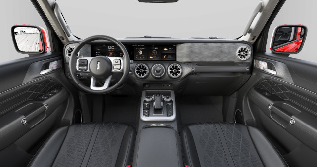 坦克300内饰大面积的方直轮廓线条搭配圆润的倒角设计、以及圆型空调出风口和圆形功能旋钮配以方菱形缝线内饰板,展现出“方”与“圆”的设计精髓;搭载12.3英寸互动双联屏,可显示海拔、气压、车轮转向显示、天气情况等越野综合信息。配备远程控制、日常服务等功能,提升使用便利性与安全性。而在豪华感知营造上,坦克300配备了双温区自动空调,温度分区控制,以更加科学、人性化的设计,满足不同乘客的舒适度要求,让智能豪华充盈于整个座舱。