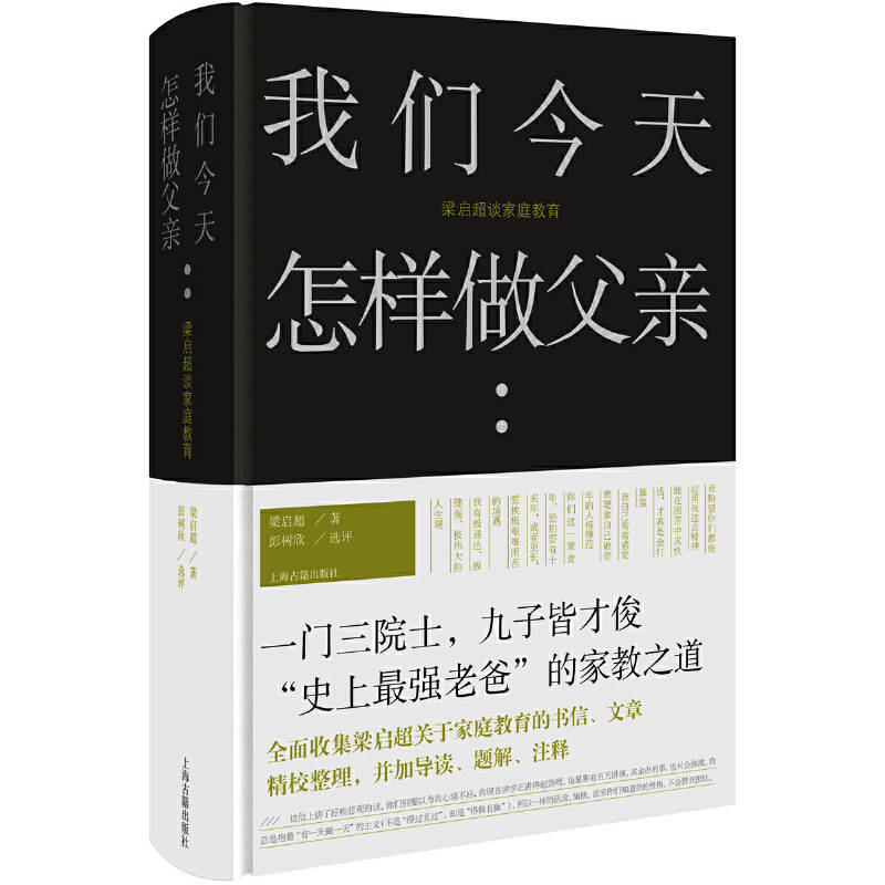 2020年秋的上海书展上,《我们今天怎样做父亲:梁启超谈家庭教育》举行了首发仪式。该书策划刘海滨说,在当时,梁启超更有“拼爹”条件,他有很多有名、有权的朋友,但他更多是在用自己的人格、精神力量去帮助儿女成长。这种帮助又不是用外在力量来直接简单解决掉,而是帮助儿女自己产生一种解决问题的能力,这其实是另外一种意义上的“拼爹”。 第一财经:你怎么看现在的“丧偶式育儿”? 刘海滨:从传统教育角度来说,父母是各有分工的,之前上海古籍出版社出了一套中华家训,一共计划出14本,从中可以看出家训、家教在中国传统教育中是非常重视的,父亲承担了主要的角色。现在出现“丧偶式育儿”,除了受早年社会分工的影响,认为母亲就应该承担更多家务,包括抚养孩子之外,很多父亲是因为自身准备不足,或者觉得母亲反正做得比较多了,顺势就把孩子教育都扔给了母亲。 我本身也是一位父亲,这也是我想做这本书的原因。梁启超是一个典型的父亲形象,从他身上我们可以去看一看父亲在子女教育中应该承担什么角色,以及应该怎样承担这个角色。可能很多人会觉得古代家书、家训里那些父亲离我们的时代有点远,但梁启超生活的时代跟现在比较接近,他面临的很多基本情况跟现在也比较一致,所以这本书可以为怎样做父亲提供借鉴。 第一财经:梁启超当时面临的哪些情况跟现在比较像? 刘海波:首先,梁启超是处在古今、中西的交会点上,是生活在现代环境当中,时代环境和现在还是比较像。其次,当时他面对的教育问题和现在尤其像。1905年科举制废除后,中国开始实行新式的学校教育,从教材、内容到教学方式基本都是西化的教育模式——现在的教育其实也没超出当时那个模式。 传统教育以做人为本,也就是以德育为主,知识性的教育是辅助,主次很清楚。现代教育是以知识为主,重知识、重技能,德育退后甚至完全被忽略了,所以梁启超说当时的学校变成了贩卖知识的杂货店。这个评价非常深刻,放到现在的学校都会觉得差不多。所以现代教育面临的最主要问题,跟梁启超当时一样,都是知识化的教育占了压倒性地位,对人格、道德、实践、素质方面的培养没有得到相应的重视,所以这些年大家才普遍感到教育有很多问题,呼唤教育改革。 第一财经:说到梁启超很重视家庭教育中的德育,很多家庭其实也十分注意孩子在为人处世方面的教育,很多人会觉得,自己还是很重视德育的。 刘海滨:你这个问题非常好。我的个人看法是,一般有些文化素养的人都会这样跟小孩说,要懂礼貌、遵守交通规则、公共礼仪,这当然是很好的。但我觉得光有这些还不够,传统道德教育里面还有个更深的理念或者实践,比如为什么一定要讲礼貌?为什么在公共场合不能大声说话?道德教育不是“应该这样”“不应该这样”,变成规则化的东西,这在传统的德育里是非常表面的,属于“礼”的层面。《论语》里孔子就说,“人而不仁如礼何”。“礼”的背后还有一个精神性的东西在支撑,就是“仁”,是如何真正做人的东西。梁启超在书信里经常传达给儿女的一个信念,其实就是《易经》里说的“君子自强不息”的精神,围绕这个他和儿女们说了很多。 这背后有个更深层的精神需求,就是我作为一个真正意义上的人,我应该是什么样的一个精神状态?如何来面对我的人生?有这种“三观”,落实在生活当中才会有相应的准则,如果身上没有这种源头性的东西,只是片面地跟小孩说不要这样,不应该那样,其实是没有力量的。所以传统教育是要回到以身作则的,教孩子要自强不息,要充满乐观、不会被困难打倒等等,这些话不是说出来的,而是大人做出来的。 第一财经:梁启超给人感觉是温情的,你在《我们今天怎样做父亲》的代前言里也说,古代其实这样的父亲不少。但为什么一说到传统父亲形象,很多人可能会觉得比较刻板?比如想起哪吒的父亲李靖,或者贾宝玉的父亲贾政,都给人很严厉的感觉。 刘海滨:这个问题是有两面性的,一方面为什么我们脑海里有李靖、贾政这种形象?可见古代肯定有父亲是这种类型。另一方面,传统文化也讲人格平等,注重父子之间的亲情。《孟子》里就说“父子之间不责善”,就是不互相责备,要求你一定要成为一个道德多么高尚的人,否则“不祥莫大焉”,很容易伤害了父子亲情,造成不好的后果。类似的话孟子还说过很多。所以从文化源头上来看就是,好的父亲形象应该就是有情感的,跟儿女之间有很好的交流,处在很融洽的情感状态。 第一财经:现在也流行一个词“拼爹”,有些爸爸觉得我多积累财富人脉、增加社会地位,关键时刻能为子女铺路,就是好爸爸。 刘海滨:我们现在所说的“拼爹”,其实是用一种外力去解决子女面对的具体问题,比如帮忙找工作、进好专业等。从这方面来说,梁启超更有“拼爹”条件,他有很多有名、有权的朋友,但他更多是在用自己的人格、精神力量去帮助儿女成长。梁启超自己做人就有很大的格局,对人生看得很透彻,很多事情也经历过,有高屋建瓴的看法和认识,这些东西在教育儿女时起到很大的作用,当儿女碰到烦恼或者困难给他诉说,马上就能站在很高的点上去帮助他们梳理问题。但这种帮助又不是用外在力量来直接简单解决掉,而是帮助儿女自己产生一种解决问题的能力,这其实是另外一种意义上的“拼爹”。 《我们今
