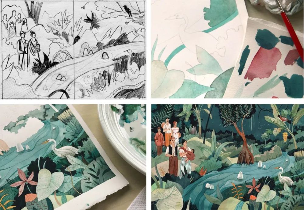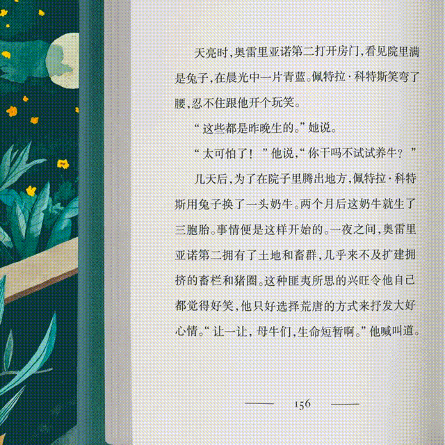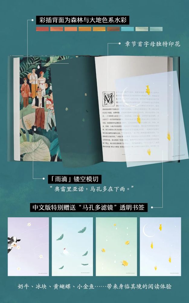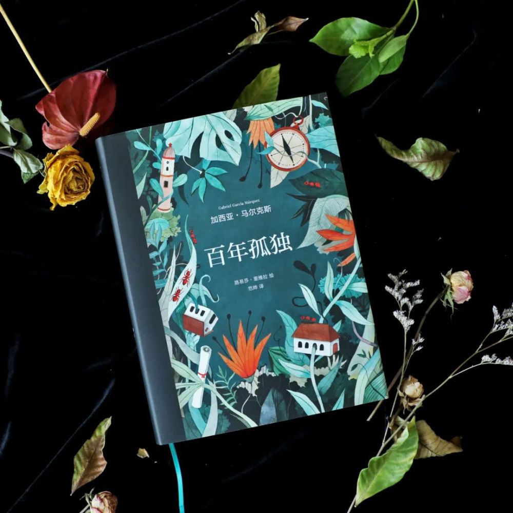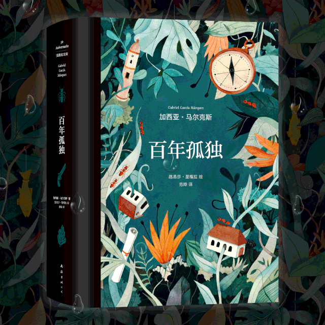 五十多年前,仅凭两根食指在打字机前敲击的某位拉美小伙子准没有想到,他在潦倒日子里写下的长篇小说《百年孤独》,在此后的半个多世纪里,会像香肠一般畅销热卖,火到连穿梭于街头巷尾的出租车司机都能娓娓道来。 写作中的加西亚·马尔克斯 “加西亚·马尔克斯”这个名字,也因诺贝尔文学奖而举世瞩目。即便最后,他罹患淋巴癌和阿尔兹海默症,渐渐将这个世界遗忘后离世,世界也没有忘记他在作品中创造的另一个世界——马孔多。 然而获奖之初,由于中国市场盗版书横行,马尔克斯曾发下狠话,绝不授权中国出版《百年孤独》。 《百年孤独》的“中国之旅”堪称又一次文学界和出版界的“爆炸”:在新经典多年不倦的努力之下,文学大师终被感动,中国读者才得以阅读到作家指定版本翻译、一字未删的《百年孤独》。 距离作家正式授权的简体中文版《百年孤独》问世,已有九个年头,中文正版销量已超800万册,全球正版销量突破5000万。 这部长销经典的热度,从未褪去,时不时还爆出惊喜。一年前网飞宣布买下改编版权,《百年孤独》将拍电视剧——文学界的大事,罕见地登上热搜。 人们持续地想象、议论,电视剧版的《百年孤独》究竟会拍成什么样?但对于数千万正版读者们来说,仅有影视化的念想,已觉欣喜和满足。 马孔多:一个“难以描绘”的世界 《百年孤独》西班牙语版问世五十周年之际,企鹅兰登书屋决定推出一个全新的版本——《百年孤独》(插图纪念版)。由马尔克斯之子贡萨洛 加西亚 巴恰亲自参与版面设计,拉美当红艺术家路易莎·里维拉绘制插图。 当时年仅29岁的年轻艺术家路易莎,已斩获拉美插画艺术奖,被知名艺术杂志《Scene 360》评选为年度十佳插画师,长期与兰登、谷歌等大公司保持合作。 当她接到兰登书屋的邀请,起初“简直不敢相信”,因为这是她们全家最爱的书籍之一;之后便感到责任之重: “交到我手中的,不仅是一部举世瞩目、意义重大的作品,更是一个难以描绘的世界。” 拉美艺术家 路易莎·里维拉 为《百年孤独》《霍乱时期的爱情》绘制插图。 尽管如此,画家的创作过程却十分流畅,几乎是“直觉式”的: “在这部作品里,奇怪的事物成为日常元素,插图版也遵循了这个原则。 “我以插画师的眼光重读了整个故事,然后画出草图,确定结构和布局;再完成整体的草图,将细节标记好后用水彩和水粉上色。我们选定了统一的色调,将所有插图联系在一起。 百年孤独插图创作过程 “马尔克斯在文学中塑造的世界以及讲述它们的方式,对任何插画家都意味着很大的启发。 我的作品一直受到魔幻现实主义的强烈影响,所以对绘制这类题材感到很自在。” 《百年孤独》(插图纪念版) 《百年孤独》(插图纪念版): 身临其境的阅读体验 经典文学如何影像化?读者们的期待和担忧始终并行。插图版也面临同样的挑战,但最后,呈现在世人面前的是一个堪称惊艳、极具收藏价值的版本——《百年孤独》(插图纪念版)。 这个版本随后由新经典文化引进,历经复杂的工艺磨合、漫长的制作周期,终于在2020年问世。中文简体版沿用范晔译本,复刻西班牙语原版装帧设计,力求展现原版风采。 雨 滴 藤蔓旺盛生长,缠绕倾倒的房屋,潮湿的热带气息扑面而来,蓝绿色主调将你瞬间拉入那座雾瘴缭绕的拉美村镇。 揭开外封,白色烫印的书名与绿色丝网印刷的图案在黑色布面书脊上一字排开,仿佛一块指示路牌,镌刻着来自奇异世界的召唤: 欢迎来到“马孔多”,欢迎来到马尔克斯笔下的魔幻现实主义世界。 翻开封面,环衬之上,花与叶交替盛放或枯萎,倒吊的小金鱼,预示着一个传奇家族“且造且毁”的命运。 蚂蚁爬过扉页,龟背竹叶轻拂指尖,作家马尔克斯的小像居于页面中央,仿佛从画里朝你微笑。 马尔克斯画像 布恩迪亚家族人物族谱跨页铺展,每一个人物对应一幅画像和一个名字,摒弃了传闻中“姓名繁复”的刻板印象,关系脉络清晰可辨。 这些人物,会在之后的插图中陆续现身,带你更深入地了解家族七代人各自的身份和命运。 人物卡 每章节开篇均采用首字母独特印花设计,仿佛写在羊皮卷前端的密码,等待你随着阅读去慢慢破解。 首字母 10幅跨页水彩插图,融合许多魔幻日常元素,在故事每一次高潮适时出现,呈现关键情节。 这里有马孔多的兴起和衰落,从新生世界伊始、许多事物没有名字的年代,到蚂蚁蛀空朽败的老宅、一阵飓风将整个镇子从大地上席卷而去。 你仿佛置身故事中: 卷入那场离奇的失眠症,喝下吉卜赛智者的药剂,恢复对事物的记忆。 或是亲临上校与蕾梅黛丝的喧闹婚礼,见证那些尚年轻的美丽脸庞,隐约听见栗树下传来疯狂老人的呓语。 你出席“王的葬礼”,头顶的空中,无数黄色小花正缤纷飘落。 你听见鸣笛声,回头看见“一间厨房拖着一个镇子”(火车)驶来——从前那些只存在于想象中的“名场面”此刻如此鲜活,令人震撼不已。 插 图 马孔多那场下了四年零十一个月的雨,落在每一页插图上,化作一个个镂空的雨滴形记号,透出背后的文字。 那是多年以后,你终于能从简简单单一句对白中品尝出的孤独滋味——“奥雷里亚诺,马孔多在下雨。” 如果用一个关键词来形容《百年孤独》(插图纪念版)的特色,那便是:身临其境。 簌簌的落叶、沉浮的冰块、连绵的雨滴、纷飞的黄蝴蝶、融化的小金鱼、哞哞乱叫的奶牛