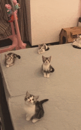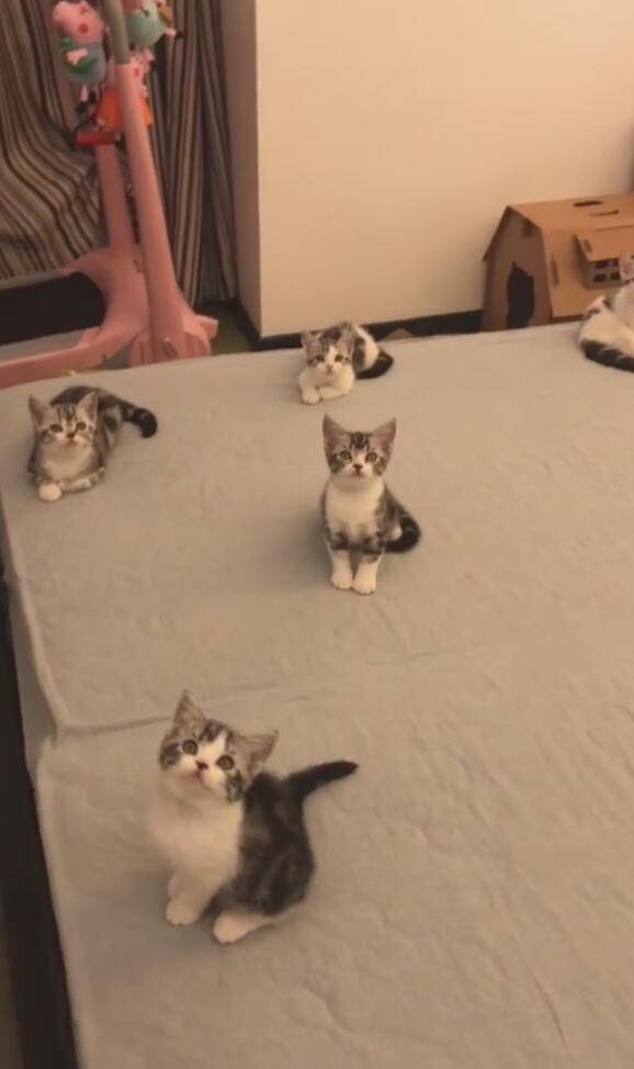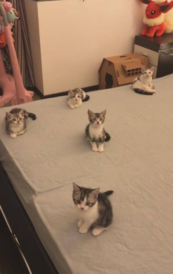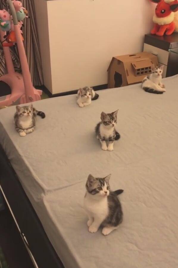 [宠宠杂谈] 五只小猫同框,动作统一标致,网友细看紧张不得了 |