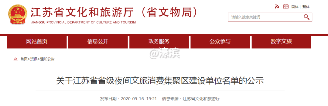 昨天 江苏省文化和旅游厅网站 发布一则公示 《关于江苏省省级夜间文旅消费集聚区建设单位名单的公示》 拟将南京长江路文化和旅游集聚区等 30家单位确定为 江苏省省级夜间文旅消费集聚区建设单位 ↓↓↓ 关于江苏省省级夜间文旅消费集聚区 建设单位名单的公示