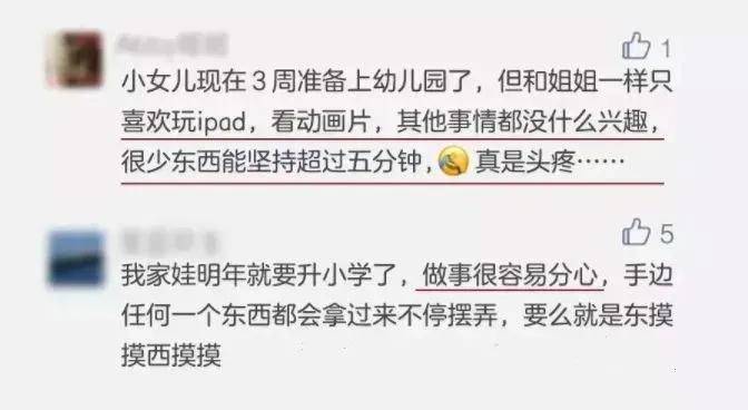 有什么事会让一个人立马变脸? 我听到过最多的回答是:监督孩子写作业。 一个朋友在我们面前从来都是个温柔、优雅的,可她一监督起孩子写作业来,就会变得暴躁、歇斯底里、毫无修养……完全不像自己。 “又玩手机,书看完了吗?” “又要去厕所,你不是刚去过吗?” “橡皮擦放下!好好写作业!” “冰箱坏了关你什么事,你的任务是写作业!” …… 打骂吼这样的戏码每天都在上演,一天不落,她真的快受不了。前几天学校开家长会,老师还特意把她喊去,告诉她孩子上课小动作太多,不专心,成绩一直在下降,希望她能注意一下。 朋友跟我抱怨说:“我也知道孩子注意力很难集中,但是能说的,能做的都试过了,真的不知道该怎么办了……” 看着朋友苦恼的样子,我也觉得很揪心。 其实,我身边对孩子的专注力感到苦恼的爸妈真不在少数……而且,无论哪个年龄段孩子的爸妈都会有这样的烦恼: 意大利著名教育家蒙台梭利曾说:专注力,是一切学习的基础。专注力越好,学习效率越高,学习成绩提高越快,反之,专注力越差,无论怎么做,成绩都很难有所提升。 之前,全国百强中学衡水中学的一位高级教师做了一个试验。 她将学生分为两组,一组是成绩较差的,一组是成绩优异的,观察一段时间后发现: 成绩较差的学生:经常分神,即使老师和家长在旁边盯着,也无法认真专注学习; 而成绩优异的学生:无论是在学校还是家里,学习专注力都非常强,往往一坐两三个小时都不受外界打扰。 最后老师得出结论,影响孩子学习效果的最大因素是:学习时的专注力。 其实,只要你细心观察周围“别人家的孩子”,也会发现,他们并不一定更聪明更努力,之所以能学什么都快,学什么都能学好,绝大部分原因是他们够专注。 误区一:孩子是故意不专心,所以必须得训斥,发火,甚至打骂孩子。 其实,专注力是一种能力,如果孩子没有大人督促只能专注5分钟,5分钟就是孩子目前的专注能力;如果孩子现在能专注20分钟,20分钟就是孩子目前的专注能力,而这种能力是可以通过训练来提高的。 误区二:孩子不专心是因为年龄小,贪玩。 每个年龄段,都有该年龄段专注力的正常水平,如果孩子低于这个正常水平就是专注力不足。孩子年龄越小,专注力越容易改善,如果家长一味等待,想着长大了就好了,只会造成反效果。 大量的案例证明,75%以上的孩子,在专注力训练的最佳期没有得到改善,青春期,专注力的问题会更加凸显,对孩子的负面影响会越来越加大。而且,专注力水平会影响孩子的人际交往,注意力不足的孩子到了青春期,情绪的冲动性会加强。 误区三:不爱学习所以不专心,因为孩子看电视玩手机可以专注很长时间。 这是巨大的误会!看电视,玩手机,属于信息的被动输入,不需要刻意的专注,就能轻松的接收信息。 所以孩子在看电视的时候,注意力反而是比较涣散的,习惯了这种状态,孩子就很难在阅读书籍或者学习的时候保持专心。