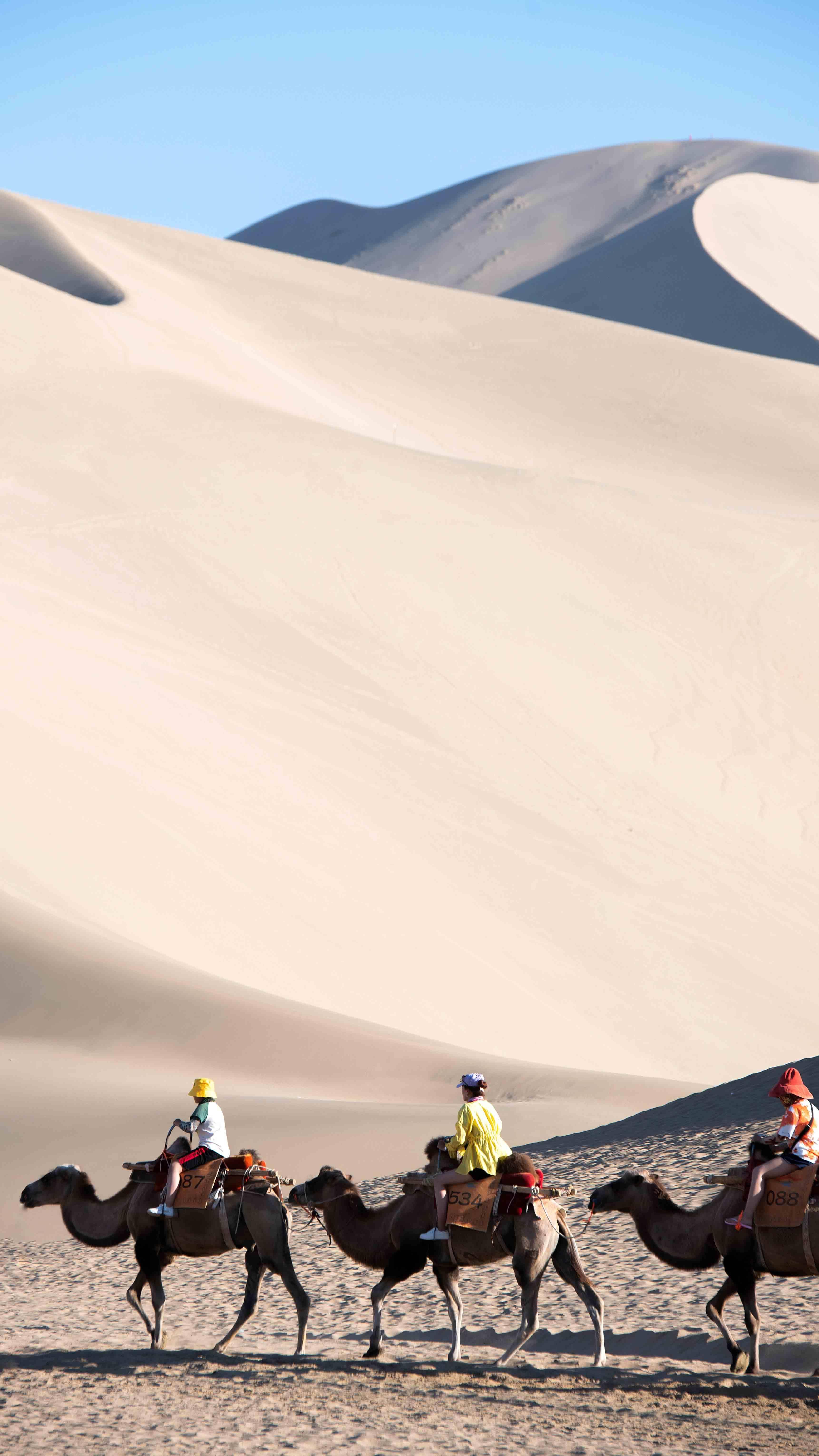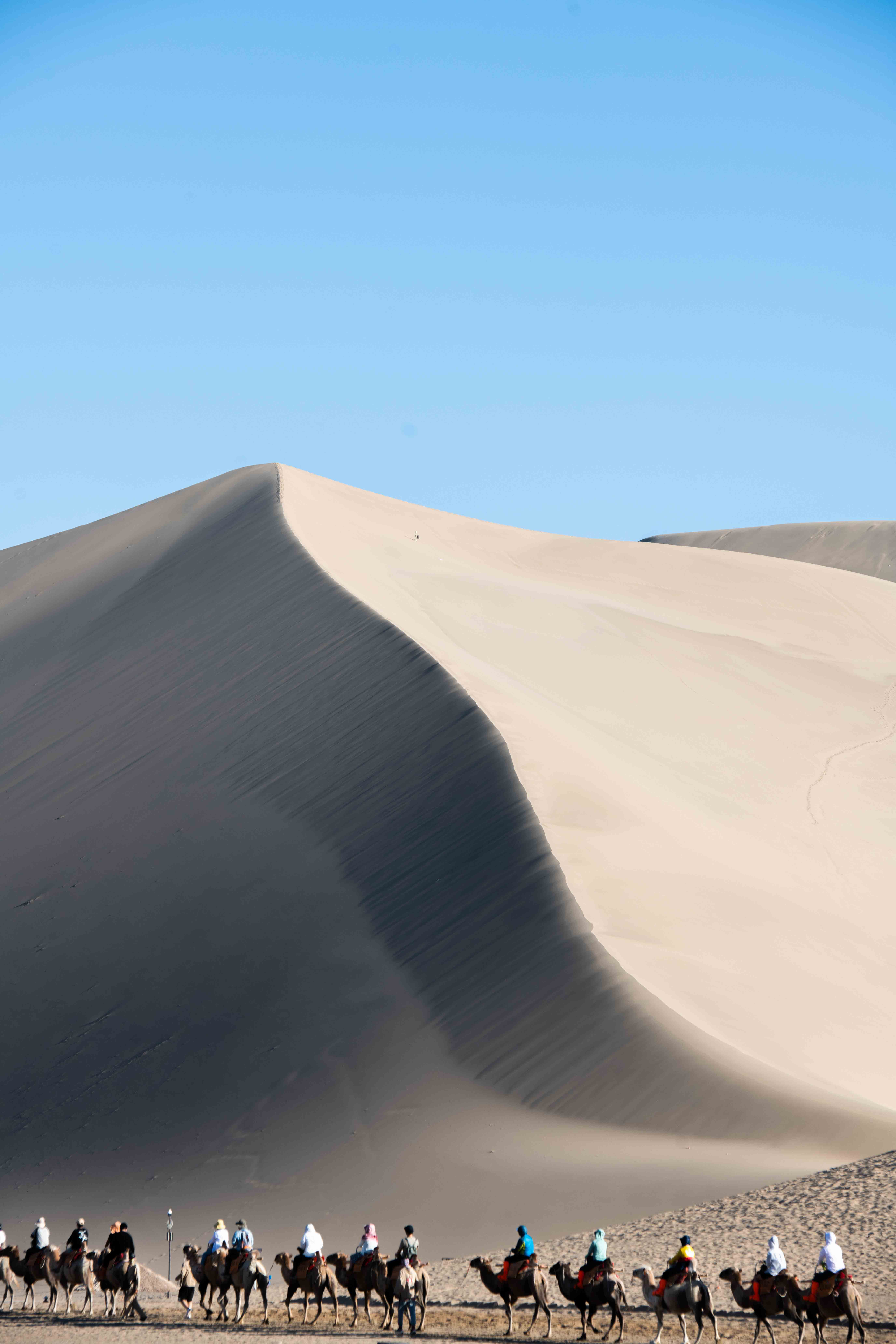 0 }3 u) Q$ C) n3 j2 ~4 ]) \ X3 A4 ^早在汉代时,月牙泉就是游览胜地。“月牙之形千古旧、恶境之地清流泉、沙山之中不淹山、古潭之鱼食不老。”月牙泉的“四奇”给人带来了非同一般的震撼。月牙泉还有三宝:铁背鱼、五色沙、七星草。鸣沙山是由细米状流沙积成,沙子有红、黄、绿、白、黑五色,在晴天或有人从山上滑下时会发出声响。传说铁背鱼和七星草一起吃可以长生不老! 关于月牙泉还有一个传说,当年唐三藏去西天取经,途径敦煌,面对无际的沙漠,步履艰难。在即将倒下时,观世音菩萨看在眼里,从紫金瓶里滴下一滴金水,瞬间在茫茫沙漠里出现一汪月牙似的清泉,后此泉得名“月牙泉”,于是唐僧获救了,便继续向西天前进,月牙泉也一直存留了下来直到今天。 沙漠中最常见的一种动物就是骆驼了,这里可以看到成群的骆驼,骑着骆驼体验沙漠风情。还有滑翔伞和山地车等游戏体验,这样的景点既有天地奇观,又有刺激的沙漠体验,超适合叫上朋友一起去游玩。 月牙泉是敦煌鸣沙山中一颗熠熠生辉的“蓝眼睛”,照看祖国的大好河山,历经山河的沧桑之变,是大自然带来的鬼斧神工。看到这里,是不是已经心动了呐?小编在这里偷偷告诉大家,学生可以凭票半价哦,而且买了票两天内可以随意游玩。看到这里,留言告诉小编,你想去这里看看吗?