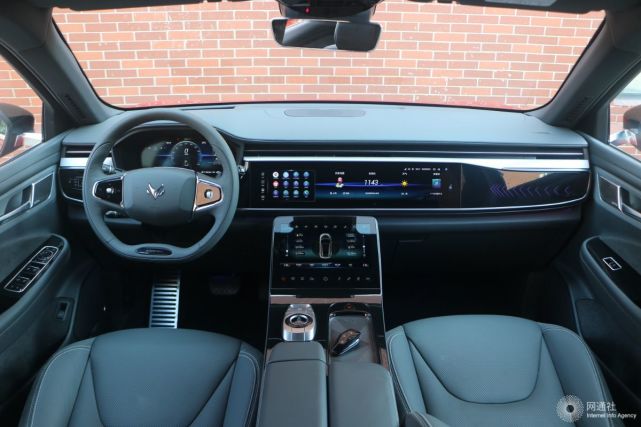- h8 z- f* N, X2 m7 J& q内饰方面,新车搭载了3块大尺寸屏幕,其中中控屏达到了20.3英寸(分辨率达到了3940×720)。此外,ARCFOX α T还配备了双辐式多功能方向盘、贯穿式空调出风口等。