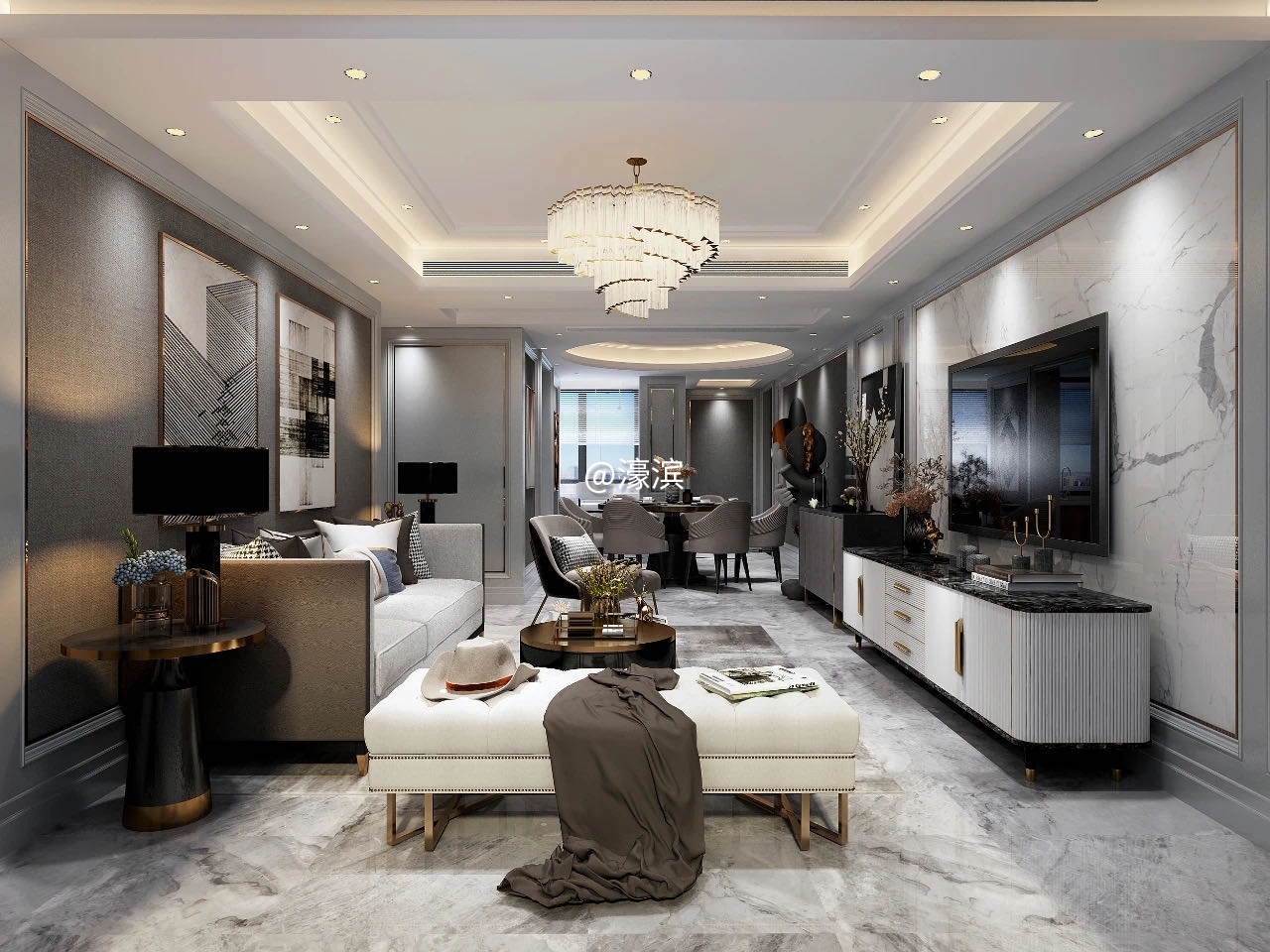 雅致的轻奢韵味,几何造型丰富了空间张力,极具个性,质感爆棚。