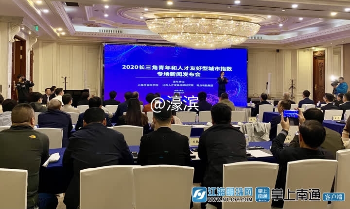 人才是第一资源,创新是第一动力。今天上午,2020长三角青年和人才友好型城市指数专场新闻发布会在南通举办,由上海社会科学院和江苏人才发展战略研究院联合成立的课题组,首次发布上海以外长三角40个城市排名,为相关城市落实长三角一体化国家战略、加强人才吸引力提供借鉴参考。其中,南通总分为79.45分,在长三角40个城市中排名第7,位居江苏省第4。市委常委、组织部部长封春晴,副市长王洪涛出席会议。