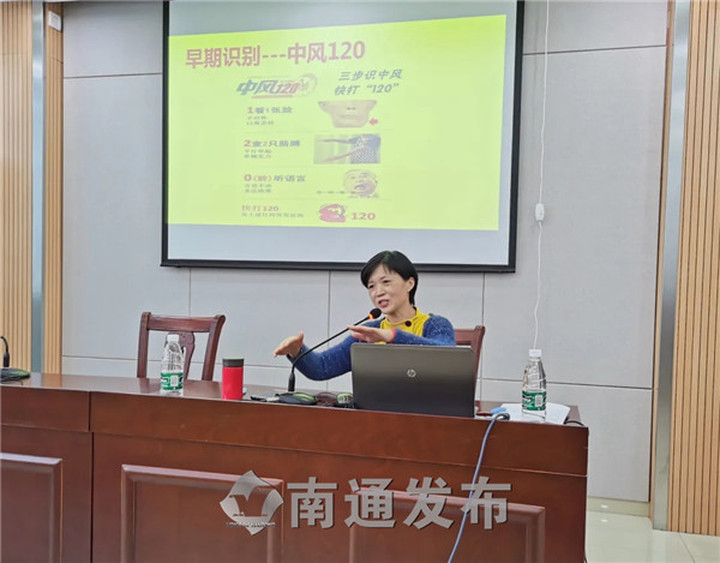 9 O1 v) A& K% x9 I此前一天,瑞慈医院大内科护士长邱祖燕在海门区常乐卫生院,为基层医护人员科普“卒中早期识别与及时救治”防治知识。 / d' h2 P! f% |$ c b1 J