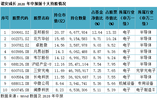 市场调侃说年轻人有三样东西不能碰:抽烟、喝酒、诺安成长混合基金。 出品|每日财报 作者|周天一 稳健严谨,素来是金融类领域不容更改的画风,然而,什么领域都有另类的存在,基金行业也不会例外。 诺安成长就是基金行业的例外,其激进的投资风格、大幅波动的净值、迅速攀升的规模,使其不断霸占热搜。 10月12、13、14日,诺安连续霸榜三天时间,原因是其在一天上涨6.06%之后,又如过山车般迅速跌回。 进入2020年以来,诺安成长混合型证券投资基金(以下简称:诺安成长)因净值大起大落备受关注,而这一切都得益于其特立独行的投资风格。 诺安成长的基金招募说明显示,该基金投资目标为“具有良好成长性的企业,同时兼顾企业成长能力的可持续性,”虽然并未在行业上有所规定,但从财报数据来看,其配置高度集中在半导体行业。 2020中报显示,上半年该基金大手笔增持电子行业,投入电子行业的资金竟然占基金净值的84.06%。 在诺安成长排名前十的重仓股中,有圣邦股份、北方华创、卓胜微、兆易创新、韦尔股份、沪硅产业-U、长电科技,共7只半导体行业股票,而另外三只股票,三安光电、中微公司、闻泰科技也与半导体行业联系紧密。 2019年三季度以来,诺安成长的持仓集中度在不断提高,2019年底的前十大重仓股合计占基金净值比为60.62%。而同类产品的平均值仅为46.25%。 截至2020年6月底,这一数据已增至81.44%,而同期平均值仅微涨至46.87%。 同期,第一大重仓股圣邦股份的仓位甚至超过了行业内普遍遵循的“双十限制”,基金净值占比达到了12.64%,诺安成长也因此成为了圣邦股份的第五大流通股股东。 因以上原因,市场将其归类为“半导体主题基金”,但有业内分析人士认为:目前诺安成长重仓半导体是由于基金经理看好这一行业的景气度而进行自主选择的,发现了更高景气度的行业或许会有所变化。 诺安成长成立于2009年3月10日,至2019年3月10日,10年时间内,净值增长率仅为39.9%,大幅跑输业绩比较基准近51个百分点。 业绩平平的诺安成长自2019年2月由蔡嵩松接管后风格骤变,并因重仓押中半导体行业风口,一扫前期颓势,年度收益率高达95.44%,在同类可比的717只偏股混合型基金中排名第6,即使在2852只混合型基金中也获得了第8名的成绩。 2020年,蔡嵩松再度加码半导体,亮眼业绩自然引发众多基民追捧。从2019年6月底至2020年6月底,一年的时间,诺安成长的规模从10.70亿元暴涨至161.19亿元。仅一年的时间,规模膨胀16倍有余。 然而,物极必反,8月3日至11月2日,诺安成长近3个月的收益率为-15.68%。其中8月更是以-12.26%的单月净值收益率领跌同类型基金。 以至于有网友发出感叹:年轻人有三样东西不能碰:抽烟、喝酒、诺安成长混合基金。 截至11月3日,以单日复权单位净值增长率来看,诺安成长今年以来的最大单日涨幅为8.95%、最大单日跌幅为8.48%,二者相差17.4%。不是“领涨”、就是“领跌”,可谓是“两头冒尖”,不少投资者直呼“像坐过山车一样”。 《每日财报》认为,投资的风险和收益是共生的,集中持有单一行业,虽然能够在上涨行情当中获得大收益,但也会因为难以及时采取避险措施,在下跌行情中造成净值大幅回撤。 因此,对于风格极致的基金经理来说,如何平滑基金净值的波动、改善投资者持有体验是一个无法回避的问题。 对于投资者来说,面对风云变幻的资本市场和当下的结构化行情,通过选择专业的基金经理间接把握市场行情红利,该如何确保自身稳健收益,获得长久持续的投资回报,优化自己的投资体验,是个人投资者最为关心的话题。 因此,根据过往中长期业绩表现,寻找经过时间检验的基金经理以及了解他们的投资逻辑,是相对靠谱的选择。应该在对基金产品做出更深入地了解之后,匹配自身的风险承担能力再做出选择,而不是盲目跟随排名。 尽管基金已经是股票的集合,对单只股票已经做了风险分散,但单只基金产品由于其投向和集中度的选择,仍有可能出现较大的波动。 作为专业的资管机构,公募基金有着“受人之托、代客理财”的初心和责任,应意识到单一配置板块的个股所带来的基金净值波动风险。如何做到收益和风控二者并行,为持有人赚取稳定的回报,是所有公募基金管理人应该思考的问题。