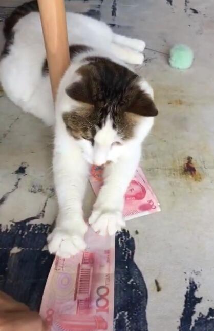 [宠宠杂谈] 猫咪把几百块压在身下,想悄悄偷走,用力一拉尴尬了! |