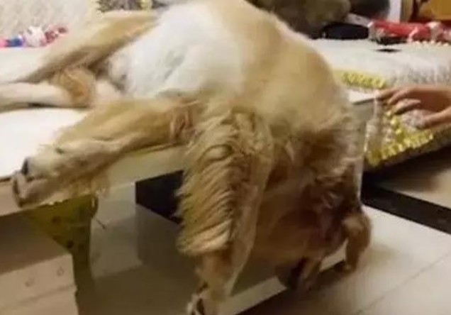 金毛是一种非常聪明的狗狗,被人们称为大暖汪。。由于宠主们对金毛教育的很好,现在一些金毛很是机灵,它们能够明白主人的心思和想法。特别是在自己犯错惹主人生气的时候,金毛似乎知道在劫难逃,干脆当起影帝,开始了自己的装死表演,巧妙对付主人,轻松化解危险时刻。 一次,金毛在家尿床被铲屎官发现了,铲屎官十分的生气,毕竟这么大了还不知道上厕所,于是就要拿来棍棒教训金毛。金毛看到主人的气势汹汹的样子,干脆也不跑了,就这样瘫在茶几上,做出一副要死的样子。铲屎官赶过来,看见金毛脑袋怎么悬掉下来,以为发生了什么意外,赶紧看看哪里出事了。 结果狗狗装的很像,但是全身上下完全没啥事,鼻子还发出呼噜呼噜的呼吸声。铲屎官突然明白这家伙就是在给自己上表演课呢,不等铲屎官先动手,自己先给自己一副要死的样子,让铲屎官想动手也找不到理由下手了。没想到金毛突然使出三十六计的,打了主人一个措手不及,这可真是让主人抓耳挠腮,就像丈二和尚摸不着头脑了。 当然,你有你的小计谋,我有我的小妙招。铲屎官灵机一动,马上去搬出自己的美食妙招。断了一碟肉包子放在金毛的面前。都知道狗鼻子贼灵,这么多香喷喷的肉包子放在金毛的面前,让它怎么能不心动。很快脑袋就慢慢在动,似乎想把自己的脑袋移动到上面去,因为香味实在让它受不了啊! 金毛最终还是没能逃过主人的魔掌,一出美食小妙招轻松将金毛的装死阴谋给解开了。小金毛一脸无赖的看着主人,好像在说:主人你要给我肉包子吃吗,对我简直太好了,其实我不是故意尿床的。铲屎官将金毛给制服了,也是一脸的兴奋。不过,该教育还是得教育,惩罚才正式开始。 ; @: c1 o+ k+ U' g
