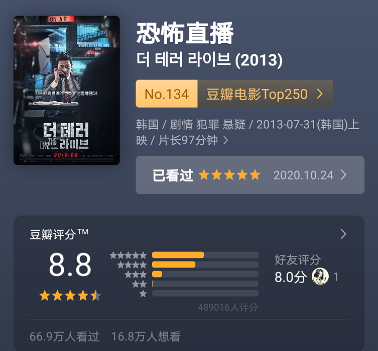 韩国的电影一向都很敢拍,怎么真实怎么来,总是揭露一些韩国的真实现状,以及人性的黑暗面,看过之后每个人都会陷入对人性的思考,比如《恐怖直播》。这部电影总的来说分为两个梯队,一些人在利益面前抛弃了人性,另一些人在生命面前选择讨回自己的公道。 这部电影是个小制作,但是丝毫不影响他的精彩,电影里没有几个外景,桥上的爆炸以及建筑物的爆炸也都是通过特效完成,唯一的主场就是男主角河正宇所在的小小的直播间,但是就在那里给全国人民展示了一场有关人性的博弈。 男主角由河正宇饰演,不得不说,演技一流,没有过多的对手戏,唯一的就是靠他和恐怖分子的对话,但是全程高能,一个人扛起了一部大戏,一个人带动了所有人的情绪。 这部电影的反响很好,在豆瓣上也拿到了8.8的评分,由此可见观众对它的认可。 01 反转魅力,不起眼的听众化身炸桥的撒旦 故事一开始,是看不见男主的脸的,但是可以判断出来他是一个电台主播,慢慢地看到了他的装束,有一点不羁,在室内还带着墨镜,胡子拉碴不修边幅,浑身散发着百无聊赖的气质,和来电的听众回答的也很敷衍,为了强行cue流程还很不礼貌的挂断了他的电话。 第二位听众是个女生,她很激动的表达了对男主的喜爱,说自己一直在电视上看到他的脸,这次终于能听到他的声音,这也让人不禁疑惑,一个电台主播为什么会在电视上露脸。 后面的发展我们才知道,原来男主本来是播新闻的主播,后来被降职到了这做电台主播,所以他才会与这里格格不入。 男主还没和女粉丝聊两句,之前的听众又打电话进来,而且工作人员无法挂断,这也算为这个听众的身份埋下一个小小的伏笔,到后面他威胁男主不听自己的话就炸桥,男主没放在心上反而还激怒他炸桥。 令人意想不到的是本以为是恶作剧,没想到真的把桥炸掉了,男主迅速反应,展示了新闻人应有的素质,一边报警,一边在纸上写下一系列关键字,得到的结论却是独家,那边警察的电话也通了,看到纸上独家两个字,他选择挂断报警的电话,这一次人性和利益的博弈,利益站了上风。 在接到恐怖分子的电话后,他没有选择报警来阻止悲剧的发生,反而想通过恐怖分子获得独家新闻从而回归自己的主播职位。 河正宇换装这一段也很有魅力,从一个糙汉子摇身一变成了帅大叔。 02 利益再次被选择,人性的丑陋暴露无遗 在和恐怖分子取得联系之后,电视台毫无疑问地拿到了独家,但是恐怖分子要求给自己打钱,电视台局长稍作思索就把钱给恐怖分子打了过去,可以很明显的听到恐怖分子很不屑地笑了一声,说“钱过来了”,而局长为了收视率能跟恶魔做交易也看出他的心狠手辣。 拿到了独家新闻,全国都关注着男主和恐怖分子的这场对话,恐怖分子讲述了自己的朋友替国家勤勤恳恳地抹了三十年水泥,却因为仅仅两万五千韩元的加班费落水身亡,本来他们有机会活下来,但是救援队因为迎接外国政要,没有一个人来救援,事后连补偿金和道歉都没有。“自己像狗一样辛苦却只能寒碜地死去”,道出了小人物的悲凉。 即使是天大的冤屈,但是因为身处底层,想要个说法但是也无人倾听。所以他选择炸掉麻浦大桥引起轰动,为的只是获取一个发声的渠道,为和他们一样的底层小人物夺取尊严。 其实他的本意并不是伤害谁,可以看到他虽然炸掉了桥引起了轰动。他也提出了自己的要求,要求总统当着全国观众的面,给他道歉。 看似他炸了桥,想要伤害无辜的群众,但是在和总统谈判之前并没有造成人员伤亡,这个情景和当年朋友落水是一样的,他们虽然被困在桥上,但是只要及时救援,所有人都能获救,这个时候,只要总统及时救援,那么不会造成任何的人员伤亡。 但是后来因为桥慢慢倾斜,局势变得越来越不可控了。在断桥上摇摇欲坠的小汽车里,一个父亲拼尽全力把孩子从车里送出去,而就在他自己马上就要从车里出来的时候,汽车掉了下去,所有的观众看到这一幕都无疑倒吸一口凉气,这也是整个事件第一个牺牲的人。 无疑将剧情推向了一个小高潮,舆论一直在发酵,各个电视台都在转播这件事情,恐怖分子也一再要求总统马上出面道歉,气氛越来越紧张。 这个时候男主心里一定很后悔,为了这个独家将事情弄成了无法挽回的局面,但是他现在已经不能全身而退,因为他身上早已被戴上了炸弹。 重压之下,国家安全厅厅长来到了电台,和恐怖分子对峙,这个厅长也是劣迹斑斑,自己也身受受贿风波,而且恐怖分子对他的底细一清二楚,但是这个厅长一直在激怒他,最后恐怖分子引爆了炸弹,厅长当场身亡,这是第二个牺牲者,将故事又推向了新的高潮。 男主这时想要退出,但是拆弹人员却迟迟不来,又是一个救援不到位的实例。而在这时,电视台局长又出场了,他给男主写了稿子,要求他照着念,稿子的意思是告诉恐怖分子,总统不会来了,然后激怒他把所有的人质都杀害了,这样他的手里没有了筹码,所有的人都会去谴责这个刽子手,也没有人记住总统在这个事件里的不作为,可以说全身而退。 03 毁灭吧,肮脏的一切 局长让男主念稿子为的也只是让收视率突破百分之七十,这样自己能够升职,无疑是在吃人血馒头,为了自己的利益让那么多无辜的人陪葬。而男主看到那么多无辜的人,还是不忍心说出激怒他的话,一直在拖延时间,一直到看到自己的前妻在桥上的时候,他才有点慌了,他那时应该庆幸没有激