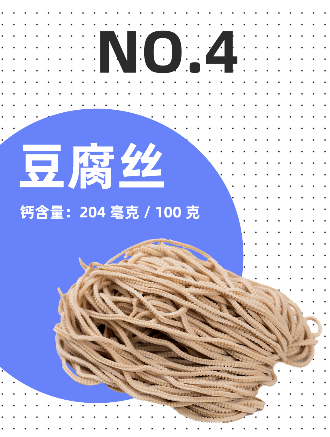 豆腐干这个钙含量真没谁了,每百克 447 毫克,当之无愧第一名。