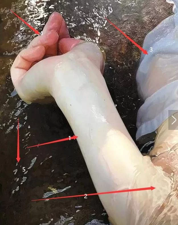 大家是否被震惊了?放大十倍后的画作,不仅没有模糊,而且还找不到丝毫油彩的痕迹。最难以置信的是,画中的所有细节,居然如此真实细腻,完美地呈现在眼前。大家不妨参照画中的五个红色箭。红色箭头1的细节,主要是水中少女的皮肤,细腻的让人难以想象,这怎可能是画?明明就是一条真实的手臂啊!我们甚至可以清晰地看到手臂里头的筋脉。红色箭头2,主要体现的是山泉水。清澈透明的山泉水淌过手臂,泛着淡淡的阳光,阳光的纹理和投影,竟如此真实,仿佛一切就在眼前。还没完,我们再来看看另外三个细节。
