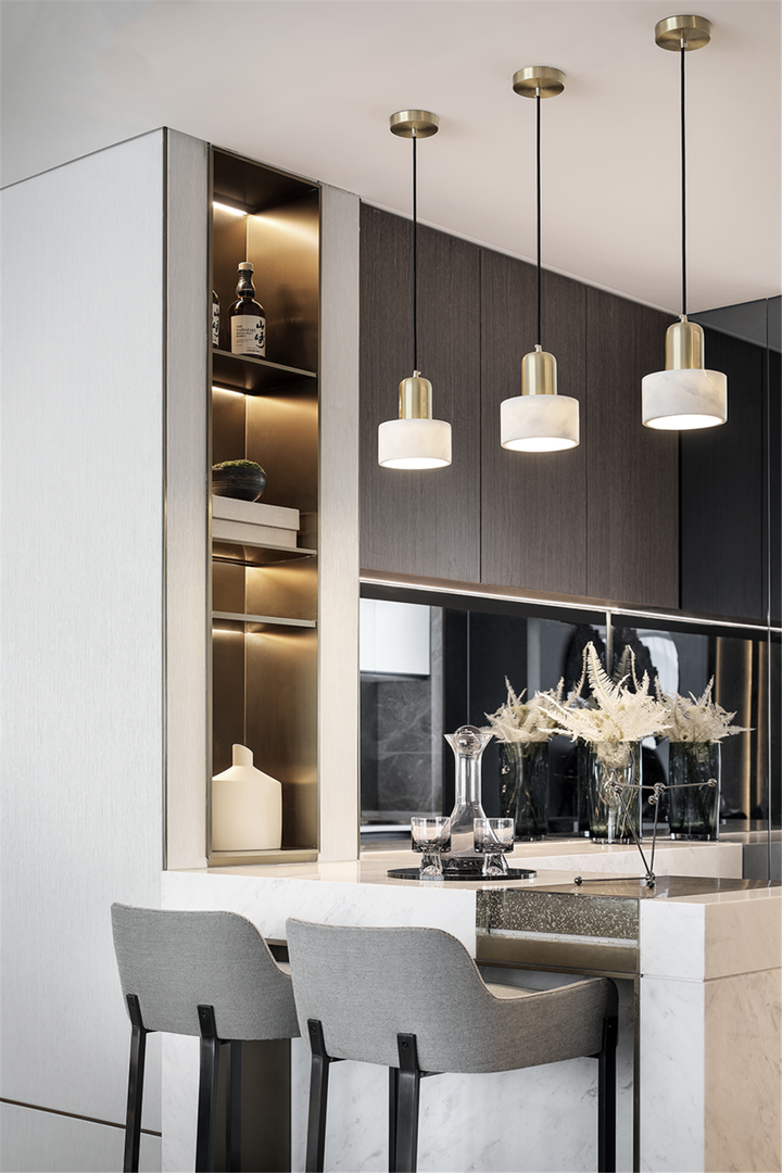 微微洒下的灯光成为美好生活的开端,增强了空间的流动性。开放式餐厨扩宽了空间的美感,创造了一个包罗万象的环境。