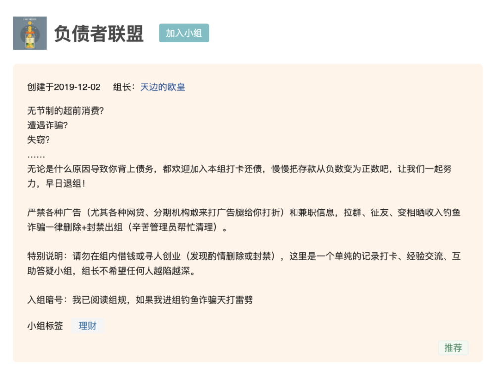 在豆瓣这个知名的互联网“精神角落”,一群年纪轻轻却背负不小债务的年轻人们,试图互相取暖。 一个名为“负债者联盟”的小组聚集了很多欠债年轻人,他们大部分过着借贷生活,但是因为过度消费或是还房贷等原因,还款压力越来越大,收入无法支撑,只能以贷养贷,最终陷入资不抵债的泥潭里无法逃脱。他们在群组里分享自己的负债经历,记录打卡还债计划,相互答疑解惑,希望能够还清贷款,早日“上岸”。 图源豆瓣“负债者联盟”并不是网络上的“拍案惊奇”,事实上,一个愈加明显的趋势是:年轻人正在被债务掏空。 根据2019年《中国消费年轻人负债状况报告》显示,在中国年轻人中,总体信贷产品的渗透率已经达到86.6%,中国年轻人实质负债人群约占整体年轻人的44.5%。 推动年轻人成为欠债者的,是门槛越来越低、产品越来越丰富的互联网放贷产品,品类越来越丰富的消费品,以及越来越浓厚的超前消费观。 在很多年轻人眼中,存钱已经过时,“今宵有酒今宵醉”的及时享乐才是人生正途。然而,茨威格一百多年前说的名言“不知道命运赠送的礼物,早已在暗中标好了价格”并没有失效,在经历贷款还不上,只能以贷养贷,将生活拖入泥潭苦苦挣扎后,此前看似无害的借贷、消费终于露出了真实的狰狞面目。 “负债者联盟”小组里充斥着反思、自省的声音,然而更值得警醒的是,虽然借款是主动行为,但复盘每一个欠债年轻人的欠债史不难发现,造就“年轻人被债务”掏空现象的始作俑者,绝不止年轻人自己。 01 “不要提前消费,不要以贷养贷,钱来的容易但是还钱太痛苦了。” 梁先生,月收入7千,负债13万 2017年,我刚到深圳开始工作,当时是做金融销售,月工资只有底薪2500元,住在市区,房租和生活费太高,收入不够花,但是在消费方面有点大手大脚,很快就入不敷出了。 那年下半年我开始借网贷来维持生活。第一次网贷是给朋友分期买一台手机,这次消费之后感觉来钱挺容易的,最重要的是不用跟朋友和家人借钱了,开始入了网贷的坑。当时对于还钱并不担心,因为我有工作,只要在工作中做几笔大业务就可以赚很多钱。借来的钱其实也不是买奢侈品等大开销,差不多都用在吃喝、唱歌和酒吧喝酒上。 期间因为有个客户在谈,如果谈好能赚一笔钱,总想着到时就能还上网贷,所以我一直有念想,就一直借,一直提前消费,最高一次是一晚消费两万多,想着钱一下来就能还上,再加上喝酒时要面子,所以一下点了一瓶一万多的洋酒,还叫了人跳舞,三百一个,叫了三个,十分钟没到就跳完了,就站在你开的台前面跳。但后面客户没谈成,钱自然也没有。 一年多下来,工作没赚到钱,网贷到期后还不上,我就只能以贷养贷,慢慢贷款就多了,最多的时候大概使用过7、8家网贷平台比如借呗,花呗、安逸花、拍拍贷等,差不多半年时间就欠下13万。 某借款平台借款还款记录,图源采访对象2018年下半年开始,还不上网贷的压迫感袭来,我的生活很快发生了天翻地覆的变化。 一方面,随着工作陷入瓶颈,我开始担心自己的收入来源,同时,以贷养贷也遇到了大麻烦——没有新的网贷渠道了,我发现很多网贷平台贷款利息太高不敢碰。收入减少、贷不到钱、身边朋友、家人能借的已经借的差不多了,然后就感觉自己欠下的网贷要逾期还不上了。 当时我每天都很焦虑,拿着手机算几号还哪个平台的网贷,这个钱去哪里找,那个钱去哪里找,一个月30天,平均两天有一家网贷要还。现在回想起来,那根本不是人过的日子,基本上晚上睡觉睡不着,脑袋里面一片空白,也没有心思上班了。 到了2018年年底,我离职了,租的房子也从之前三人合租、月租五千多的小区房,换到了两人合租、月租1200元的城中村,在城中村房间里过了近两个月靠网贷过的日子。 这个时候,我决定要停止这种看不到希望的生活,就从深圳回到湖南老家了,到家自己已经连100块都拿不出来,而父母明显感觉到已经老了,也是从那会儿开始我决心要好好计划还贷,不乱花钱。 回家后经济压力小。2019年3月份,我换了一份能拿到稳定工资的工作,在家人帮助周转下,大概花了一年八个月的时间把网贷慢慢还上。 现在很多网贷平台贷款都很容易,下款快、额度大,很多广告都是多少钱用一天才几毛钱,就是为了引导我们去贷款,但其实算下来年化利息并不低。比如有一种还款方式是先息后本,就是每个月只还利息,借1万块钱,一天利息是5块钱,一个月就是100多块钱,一年之后才能把一万块钱本金还进去。 我因为自己从事这行,所以那些要提前收利息的一律不碰(美其名曰叫砍头息,贷1000给700,到期再还1200那种一律不碰),给了额度也不要,就贷了一些还算比较正规的,虽然上征信,也管不了。 现在总结一下,造成自己入坑的原因就是通过网贷拿钱出来提前消费,自己给自己画饼,总觉得自己能还上,有期望在那里,又颓废了几个月,工作不努力还死要面子,还有以贷养贷,多花了好多冤枉钱。 现在生活慢慢走上正轨,我花每笔钱都有计划,对借贷也有了风险意识,真的想说不要提前消费,不要以贷养贷,钱来的容易但是还钱太痛苦了。 02 “借贷还是会产生积极作用,关键在于如何使用,我会将这些钱用于自我投资而不只是消费。” 田女士,月收入7500元,负款近5万 我是从上大学的时候养成了超前消费的习惯,当时我用京东白条购买生活日用品,付款可以分12期免息,分期付款方式