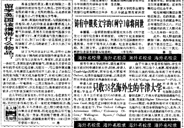 1994年,一篇有关“留学英国该携带什么物品”的文章中,作者想得周到:
