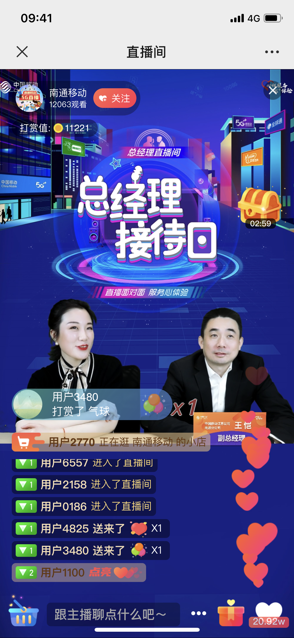12月17日, 南通移动开展“心级服务 优+体验”总经理接待日直播活动,南通移动副总经理王恺作为南通移动用户的“首席服务官”,与客户面对面沟通交流,助力家庭产品优势及服务宣传,听取客户意见建议,推动热点问题优化改进。