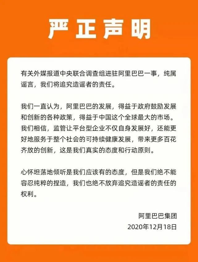 至少在当前,蚂蚁的麻烦,似乎还未宣告结束…… 刚刚,有传言说调查组进驻阿里,阿里巴巴紧急发声明: 12月18日下午,阿里巴巴集团就有关外媒报道“中央联合调查组进驻阿里巴巴”一事发表声明:“纯属谣言,我们将追究造谣者的责任”。声明表示,阿里巴巴的发展得益于政府鼓励发展和创新的各种政策和中国这个全球最大的市场。“我们相信,监管让平台型企业不仅自身发展好,还能更好地服务于整个社会的可持续健康发展,带来更多百花齐放的创新,这是我们真实的态度和行动原则。” “心怀坦荡地倾听是我们应该有的态度”,阿里巴巴在声明中表示,“但是我们绝不能容忍纯粹的捏造,我们也绝不放弃追究造谣者的责任的权利。 也就在今天,支付宝已下架互联网存款产品,仅对已购买产品用户可见。 蚂蚁这边倒是火速回应了,大概意思就是:是根据监管要求。 其中意味,不必多说,大伙儿也明白了: 前几天,监管发声指互联网存款“无照驾驶”。 显然,现在监管对金融科技的口袋还在不断收紧。当下大热的互联网存款,终于还是被监管部门亮起了“红灯”。 于是,今天港股市场互联网巨头股集体下跌。 由于目前相关政策文件还未正式下发,具体监管思路和要求也未知,但据说市场上其他金融类产品也是闻风而动,都在进行积极整改和调整。 话说蚂蚁集团从最初的集万千宠爱于一身,到如今成了“众矢之的”,真是不得不感叹命运弄人啊! 这一段时间,针对互联网企业的反垄断法的出现,致使几家互联网巨头几天时间内蒸发数万亿市值。 这样的大场面,入行多年,还是真第一次见到。 不过,当一个企业巨大到几乎垄断一个行业的时候,危害是巨大的,参考韩国那边的财阀集团。 互联网企业的核心科技创新,初衷本是惠民,如今国家再不出手,它们似乎要在偏离的轨道上越走越远了。